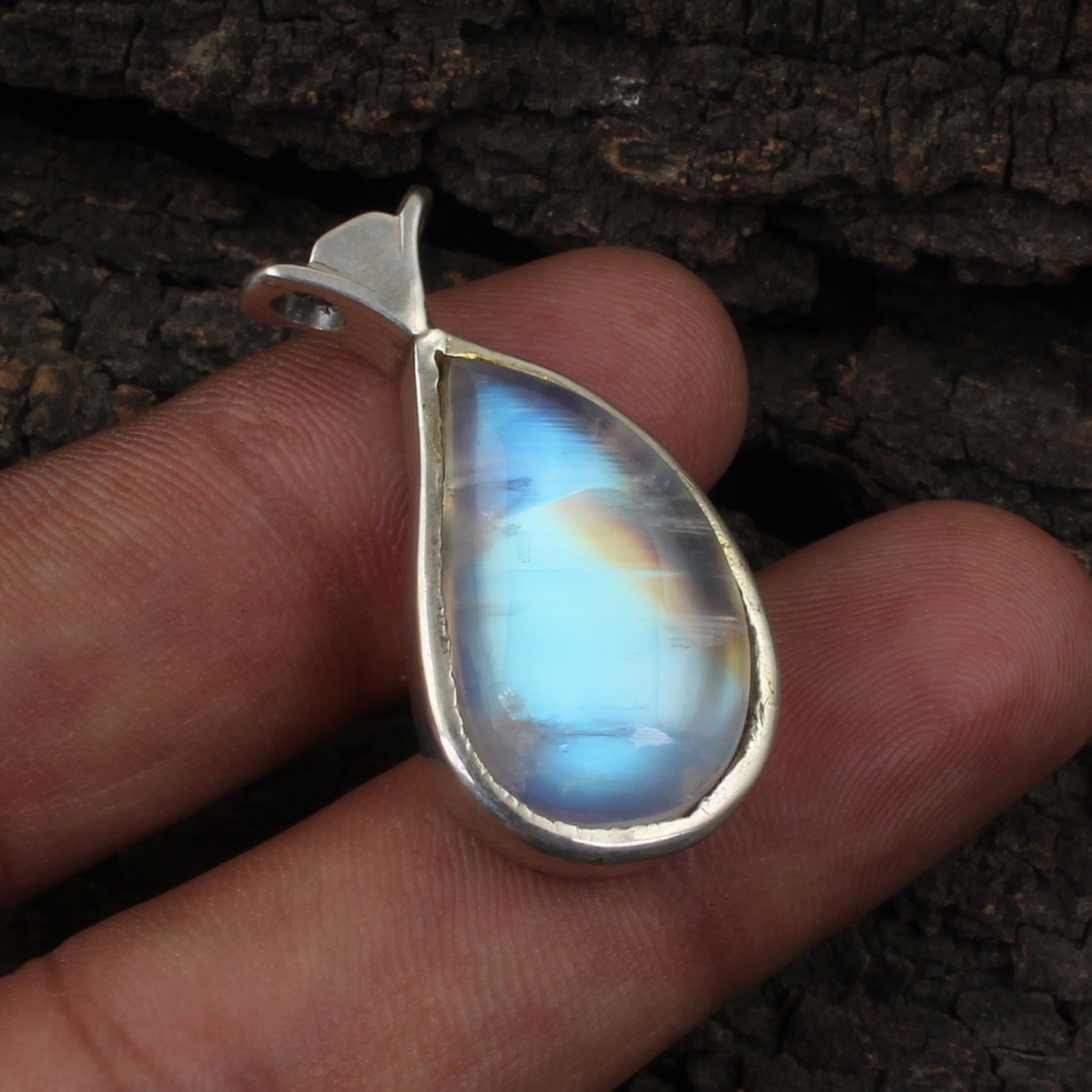 Blue Flashy Rainbow Moonstone Pendant Handmade 925 Sterling Silver Natural Gemstone Pendant