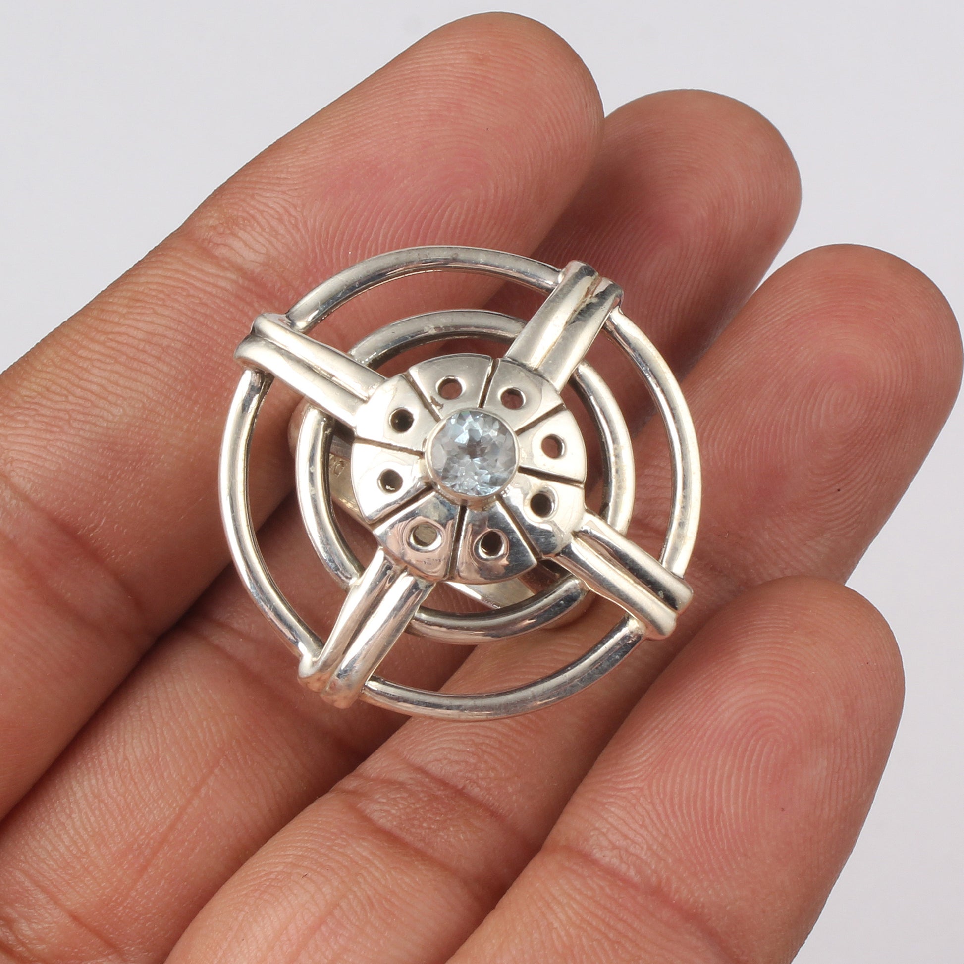 Blue Topaz Geometric 925 Sterling Silver Statement Ring Handcrafted Natural Gemstone Ring Jewelry