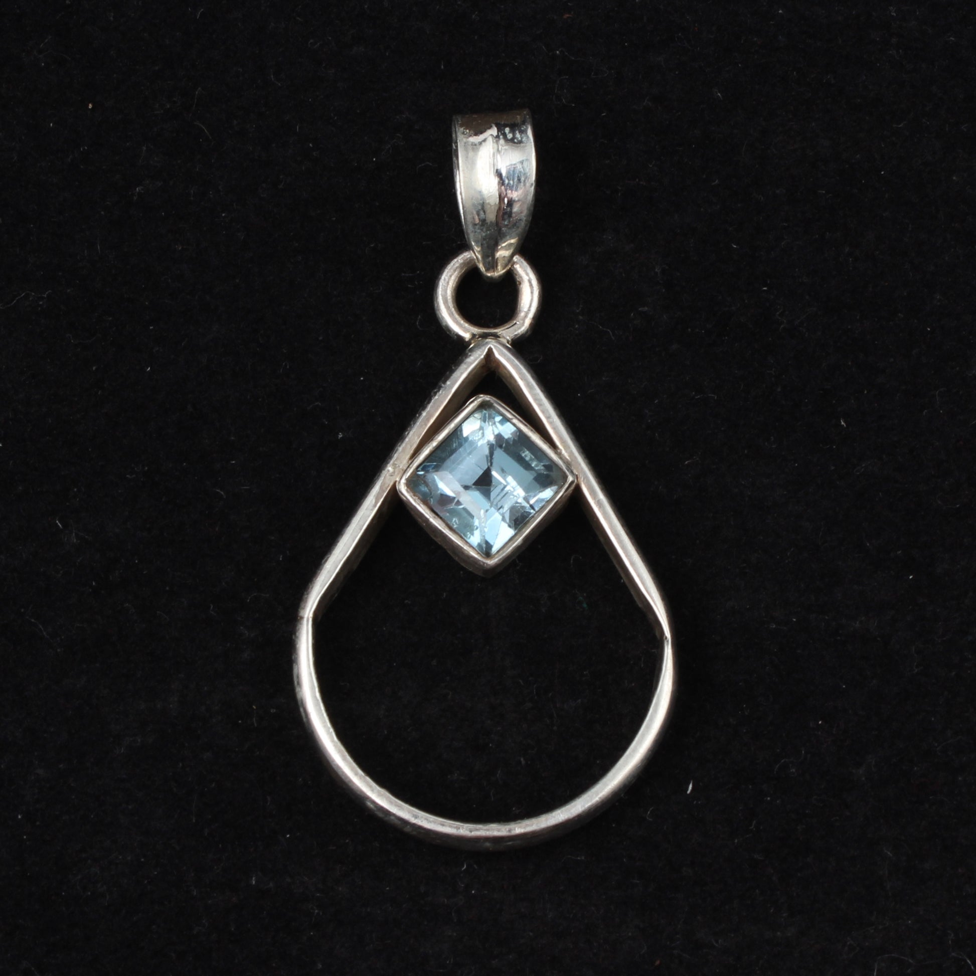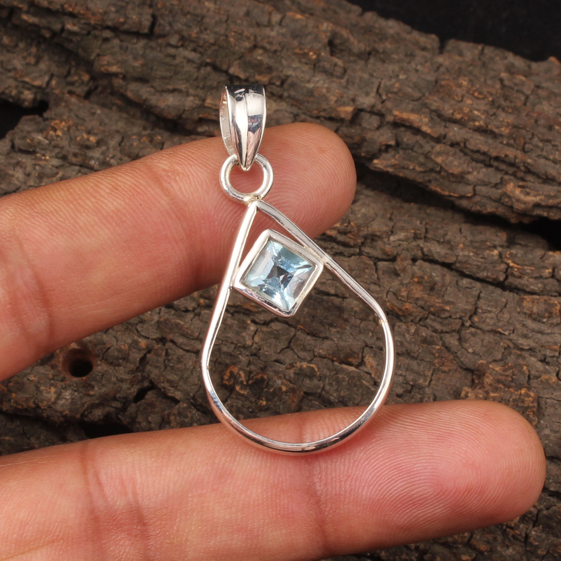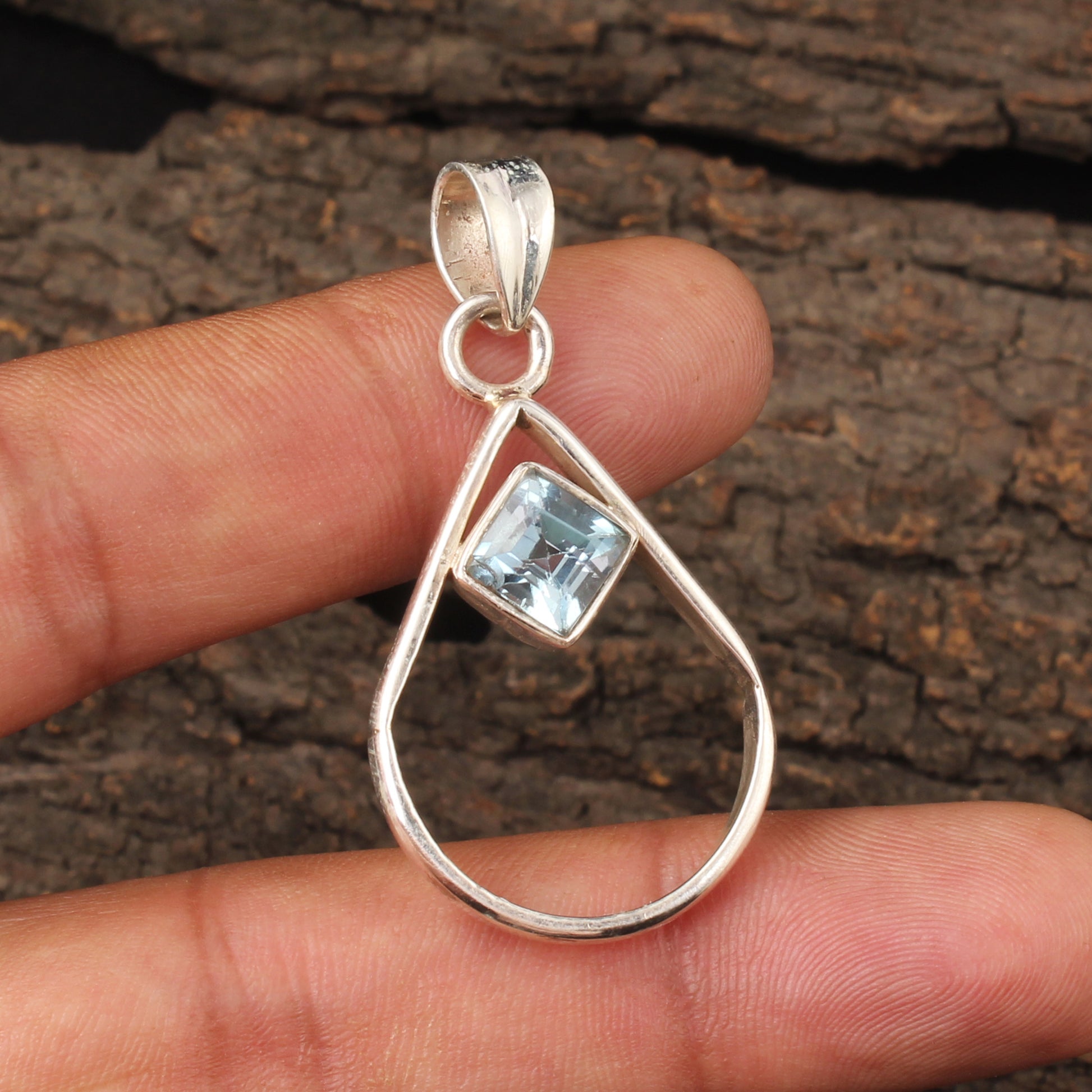 Blue Topaz Pendant Faceted Gemstone Pear Shape 925 Sterling Silver Pendant Gift For Her December Birthstone Jewelry