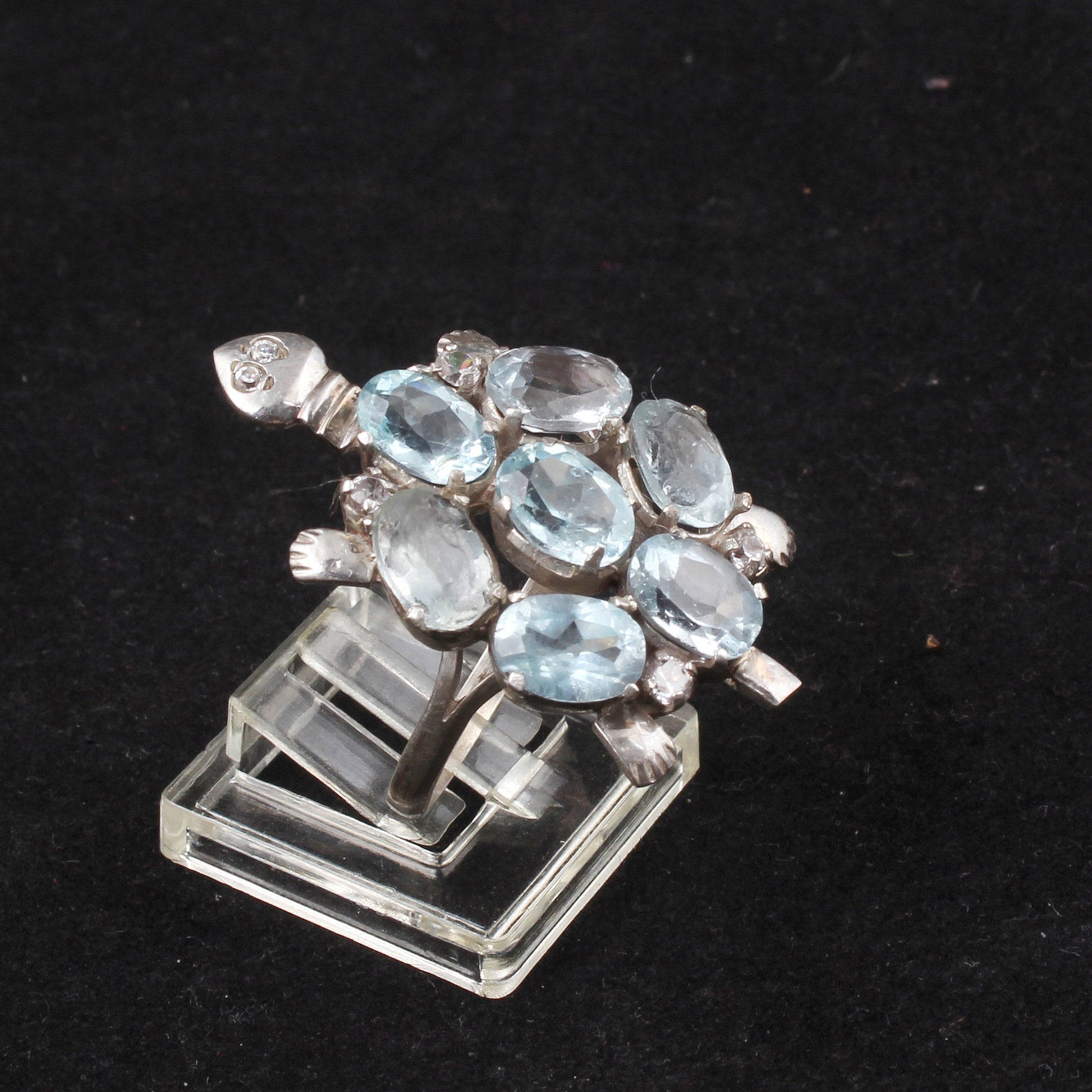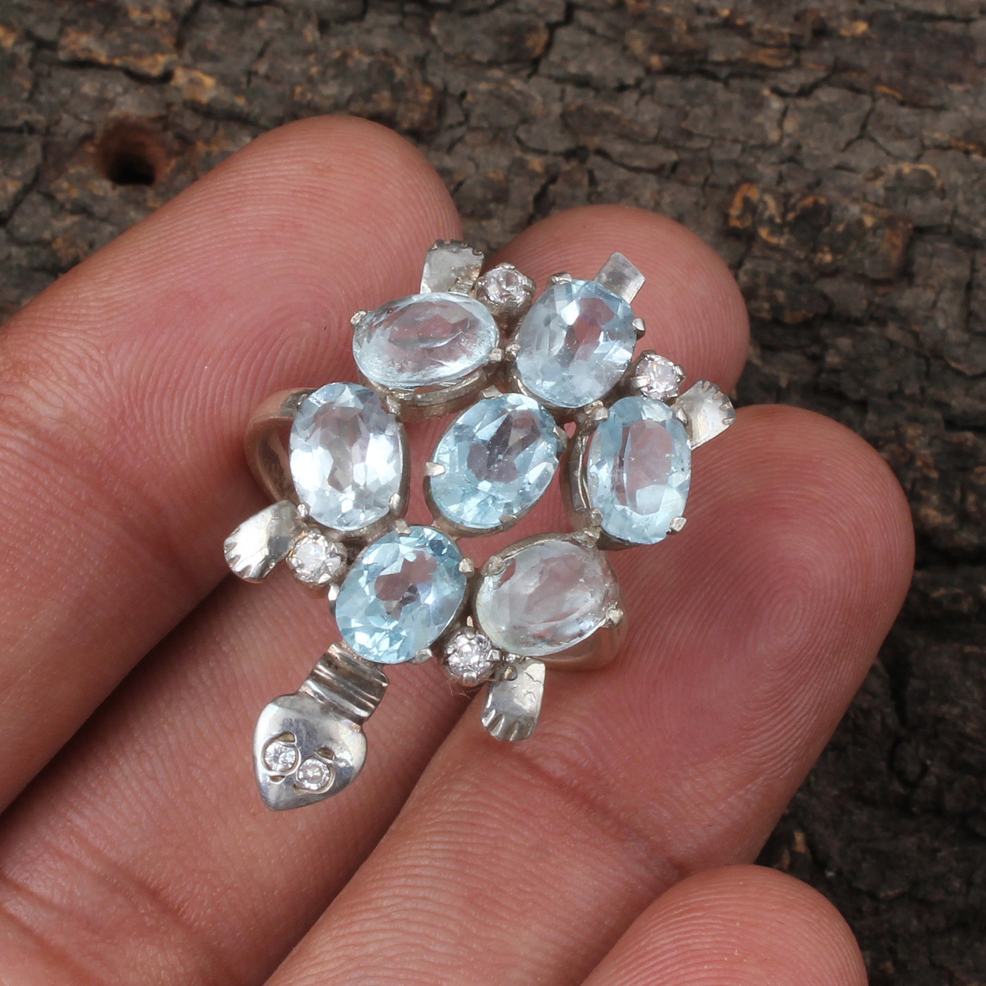 Blue Topaz Turtle Ring Handmade Prong Setting 925 Sterling Silver Natural Gemstone Animal Themed Ring