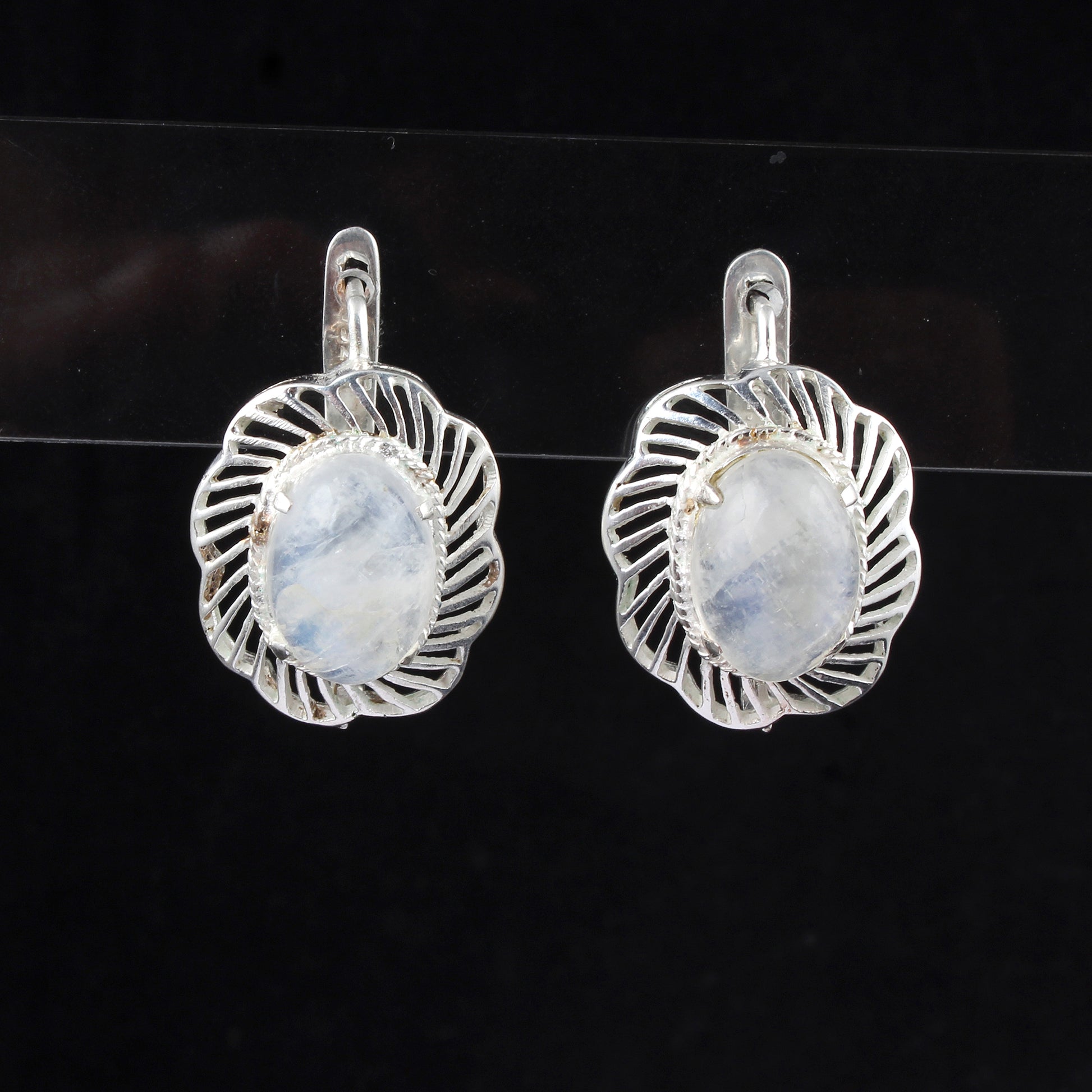 These expert-crafted Boho Rainbow Moonstone earrings feature a natural 14x10mm oval gemstone, set elegantly in 925 sterling silver with a secure prong setting. Measuring 2.6 x 2.2 cm and weighing 10.28 grams, they combine artisanal skill and quality materials for a refined, timeless accessory. Ideal for those seeking both beauty and durability in natural gemstone jewelry.