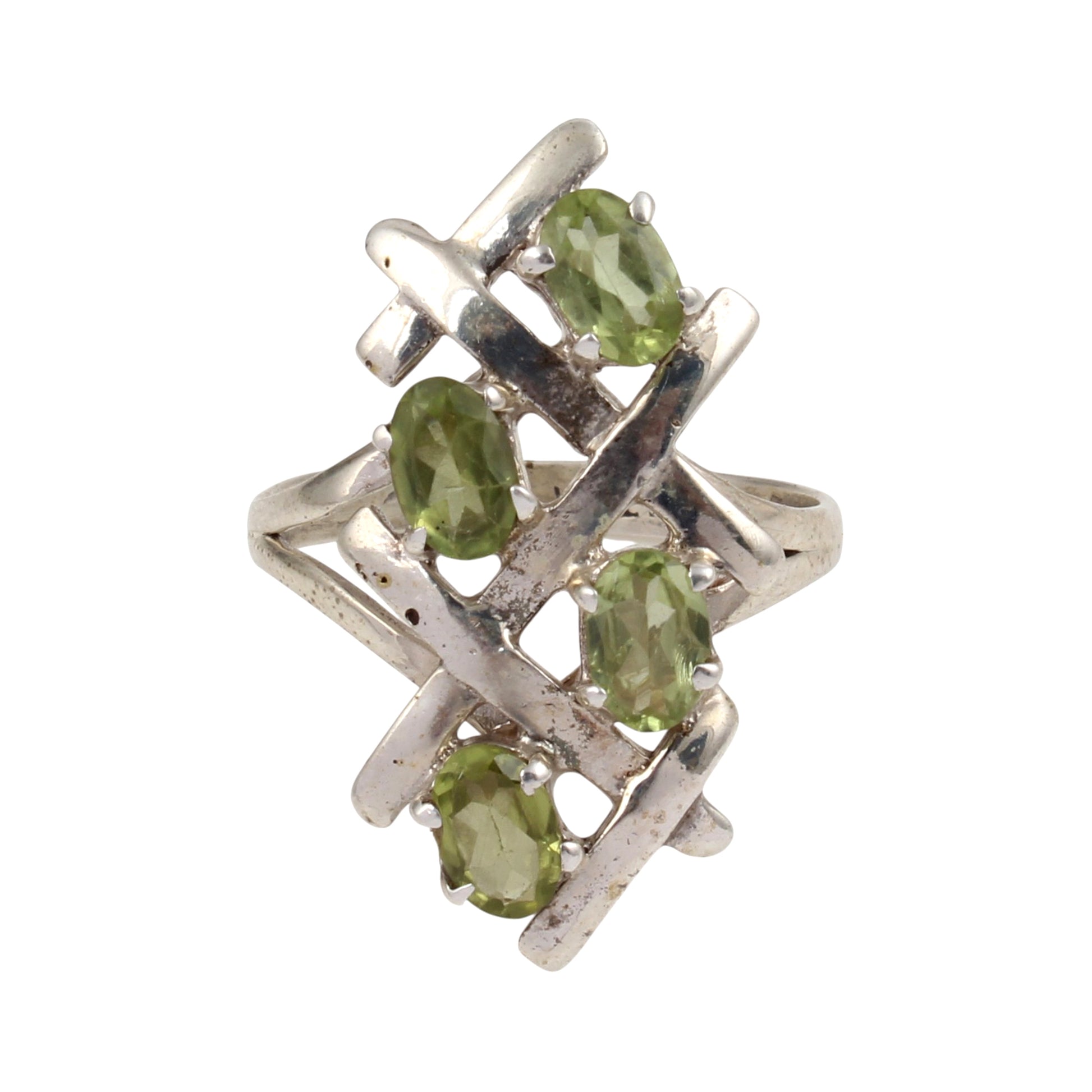 Criss-Cross Peridot Ring Handmade 925 Sterling Silver Prong Setting Natural Gemstone Rings For Women Girls