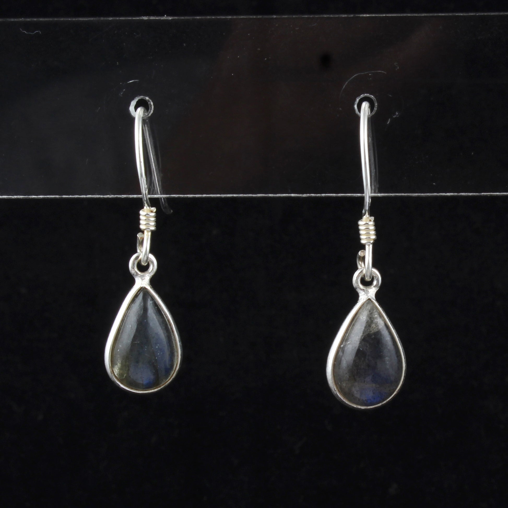 These expertly crafted dangle earrings feature pear-shaped labradorite gemstones set in a handmade bezel of 925 sterling silver. Measuring 3.1 x 1 cm with stones sized at 13 x 9 mm, each piece balances elegance and durability while weighing 3.23 grams. The unique play of colors in labradorite enhances any outfit, making these earrings a refined addition to your jewelry collection.