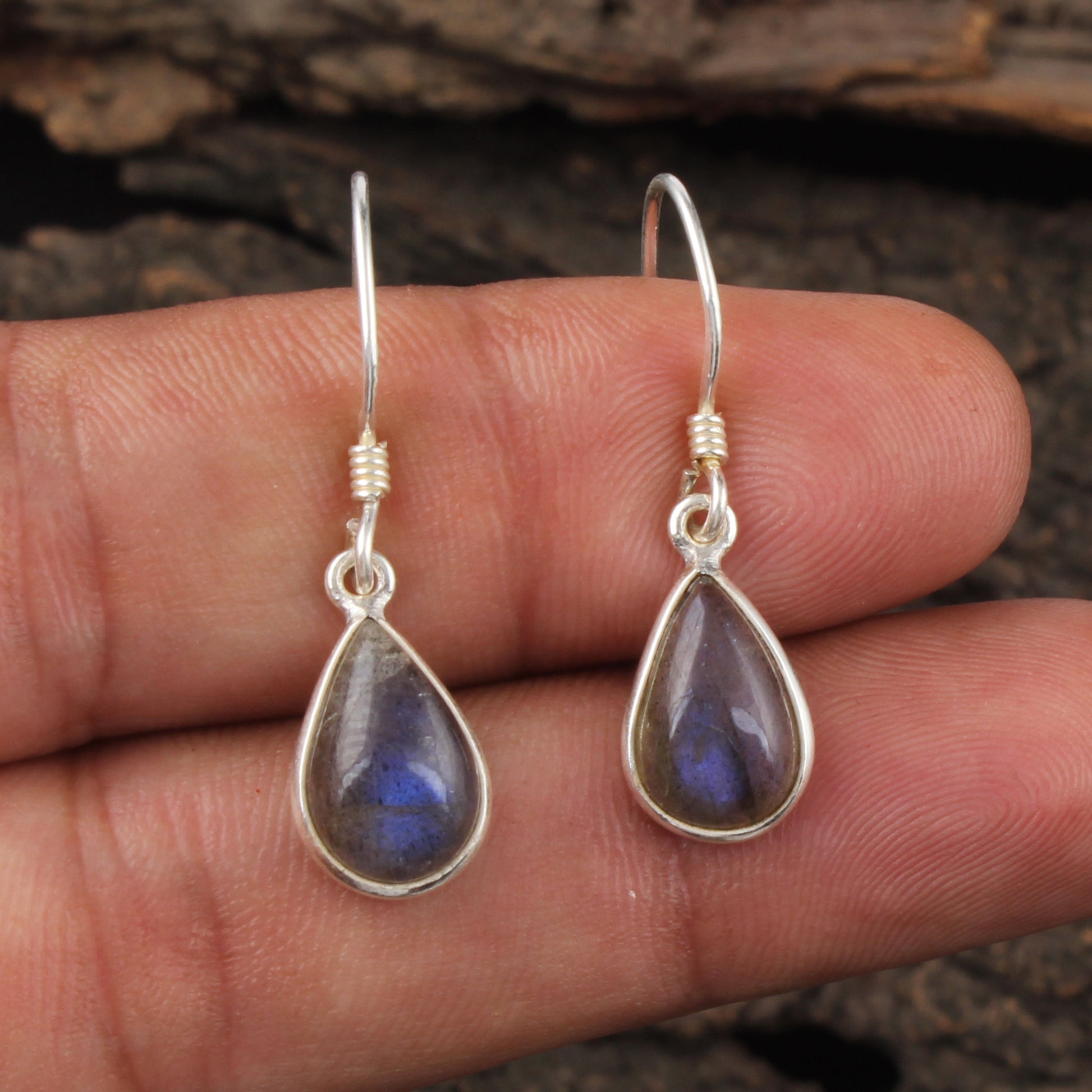 Dangle Labradorite Earrings Handmade Bezel 925 Sterling Silver Pear Gemstone Earrings Jewelry