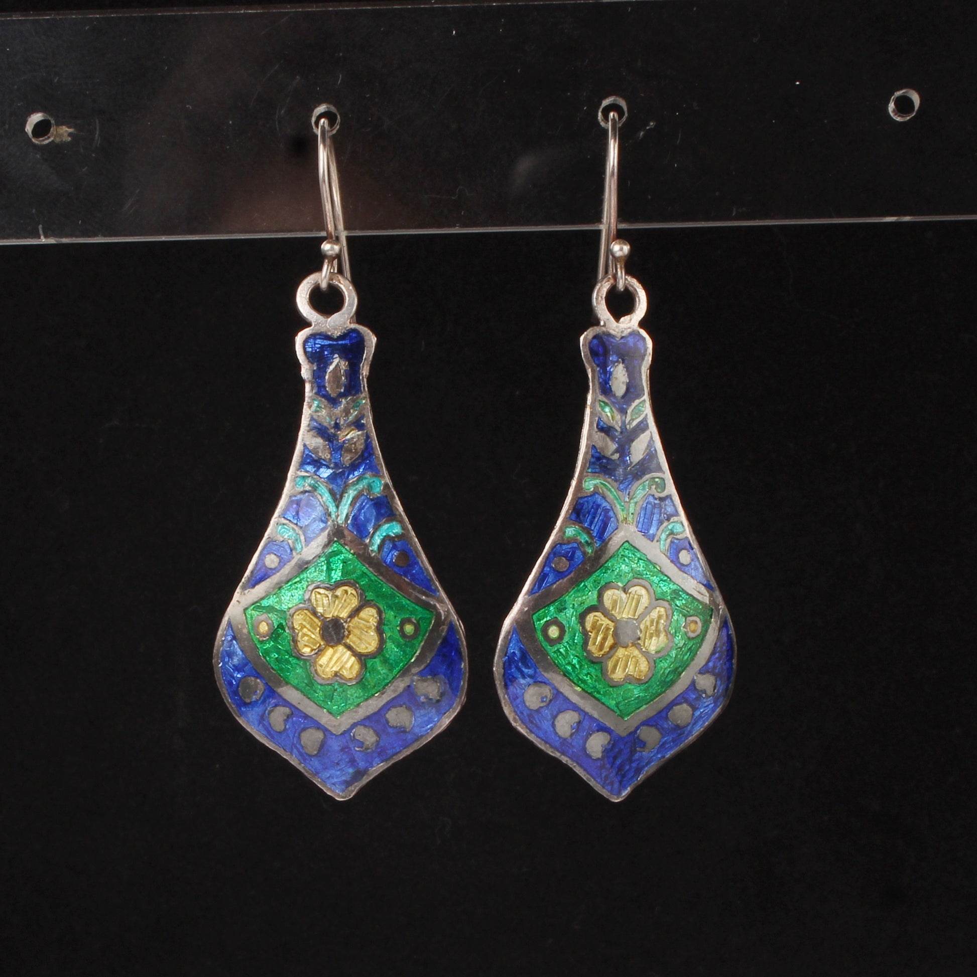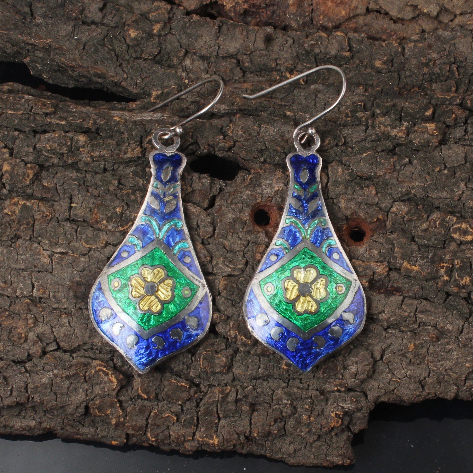 Designer Silver Enamel Earrings Traditional 925 Sterling Silver Earrings Ear Wire Meenakari Earrings