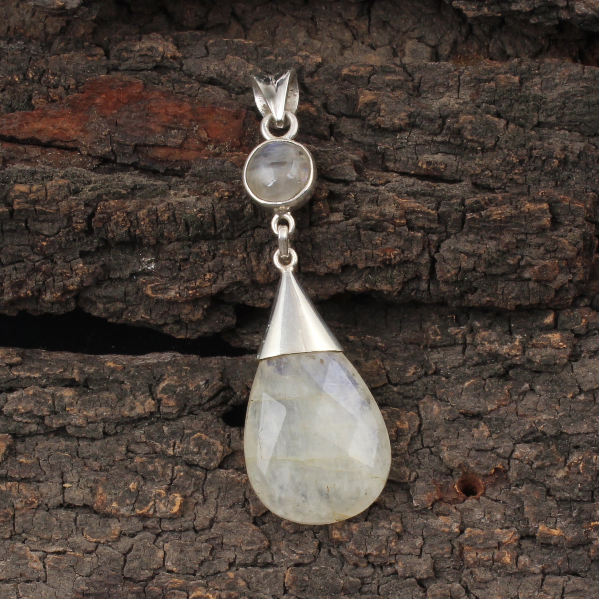 Drop Rainbow Moonstone Pendant Handmade 925 Sterling Silver Gemstone Pendant