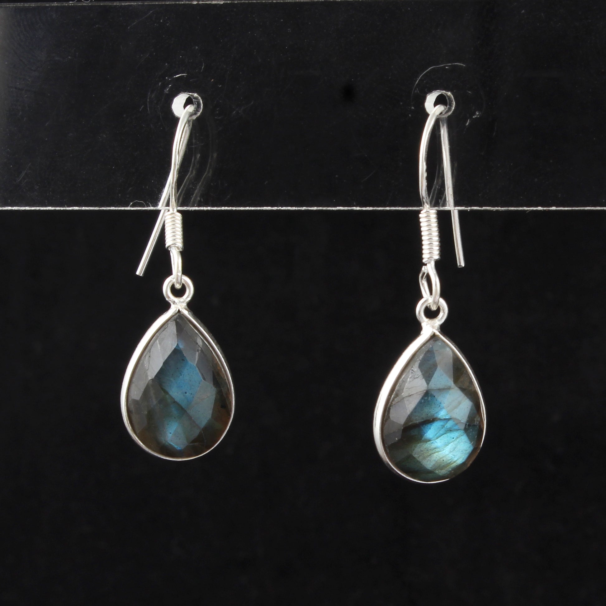 Faceted Labradorite Earrings Handmade Bezel 925 Sterling Silver Pear Gemstone Earrings Gift For Her