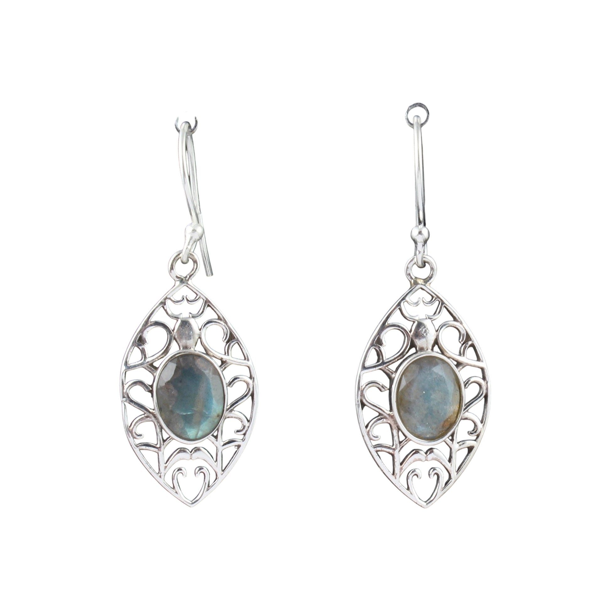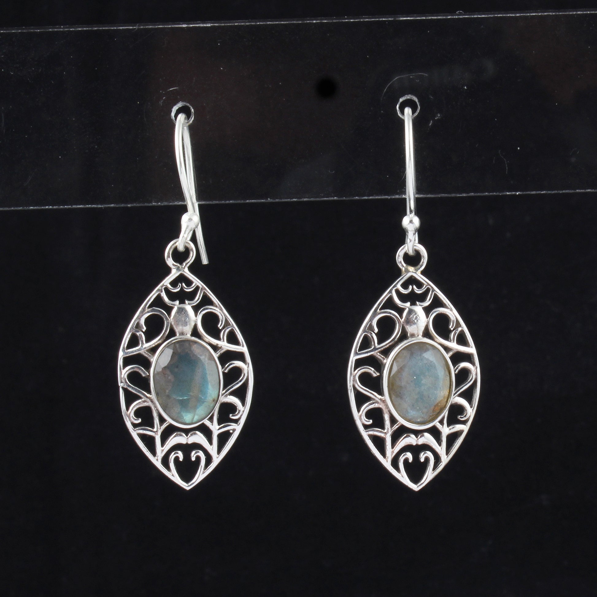 These handcrafted faceted Labradorite earrings feature oval stones measuring 9x7mm, set in 925 sterling silver for durability and elegance. With a comfortable size of 4.4 x 1.5 cm and a lightweight design of 4.09 grams, they offer a perfect balance of style and wearability. Ideal for adding a boho-chic touch to any outfit, they make an excellent birthday gift for her, combining expert craftsmanship with the unique mystique of Labradorite.