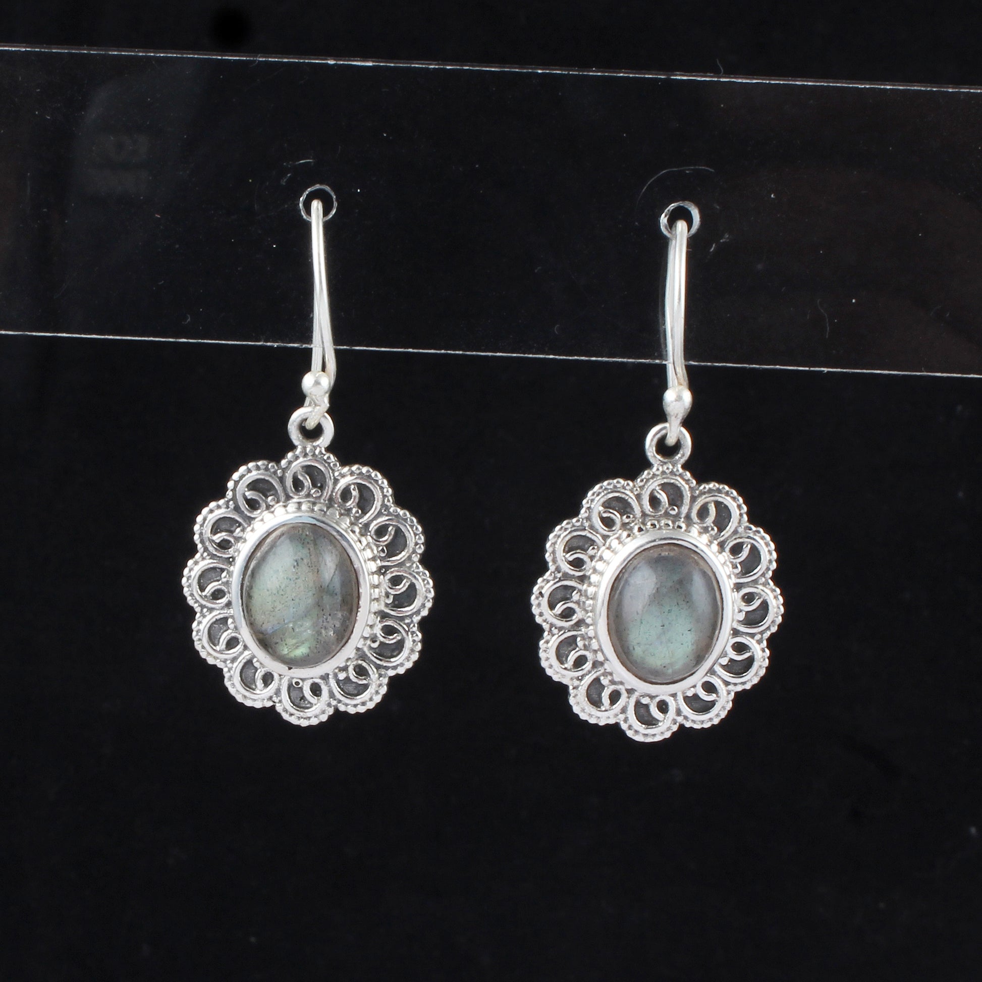 Filigree Labradorite Earrings Handmade 925 Sterling Silver Oval Gemstone Earrings Christmas Gift For Her