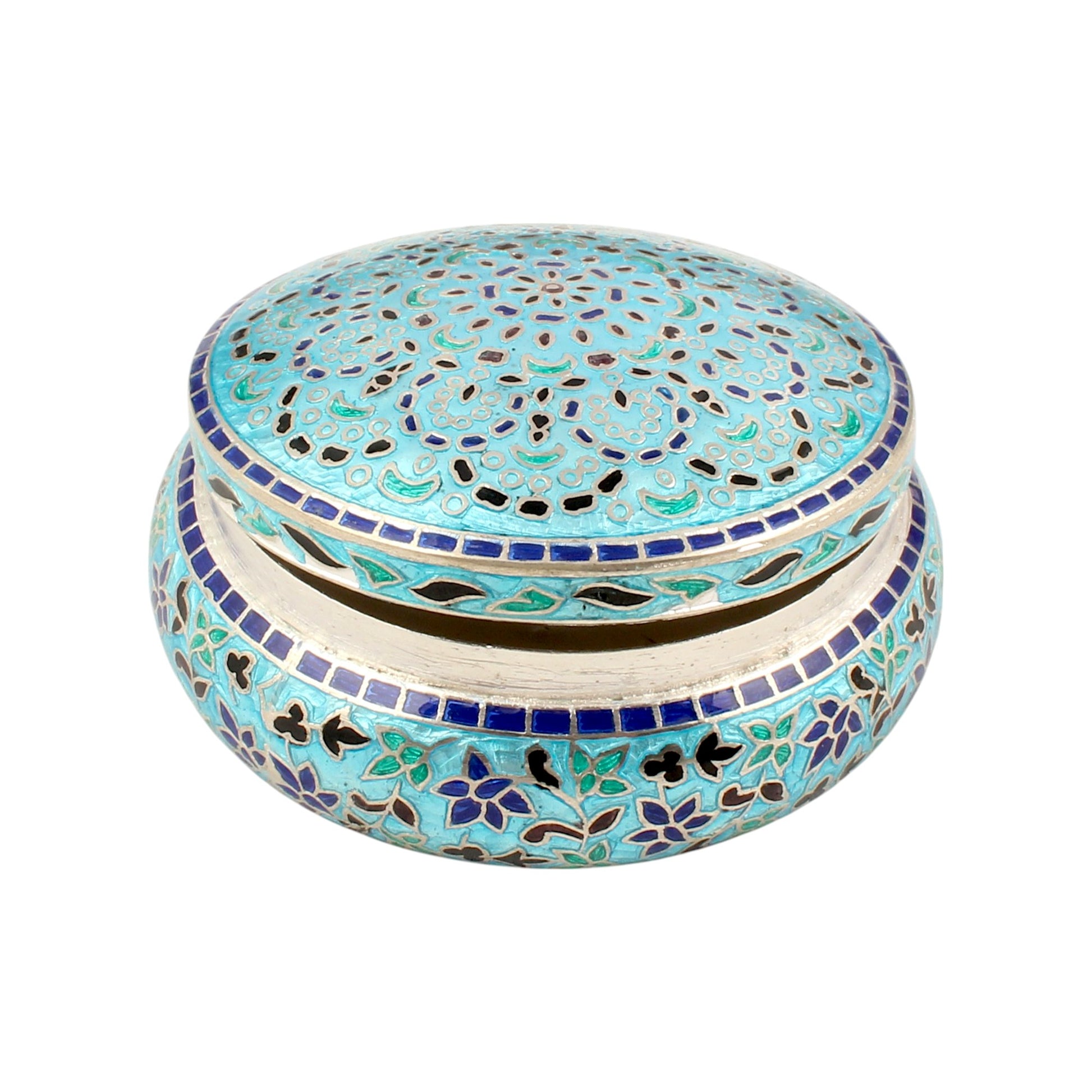 Crafted from high-quality 925 sterling silver, this Floral Enamel Work Box combines durability with exquisite artistry. Measuring 3 inches, it offers a compact yet elegant storage solution for your precious jewelry. Weighing 77.41 grams, the box features intricate enamel detailing that enhances its visual appeal while protecting your valuables. Ideal for collectors and connoisseurs, this piece blends functionality with refined craftsmanship.