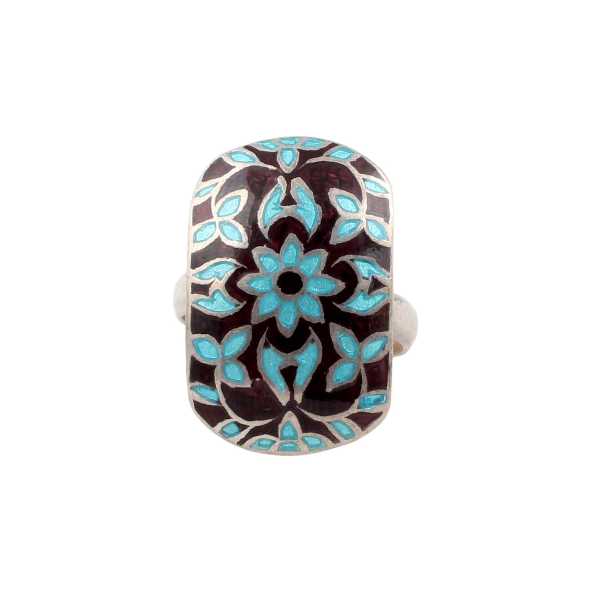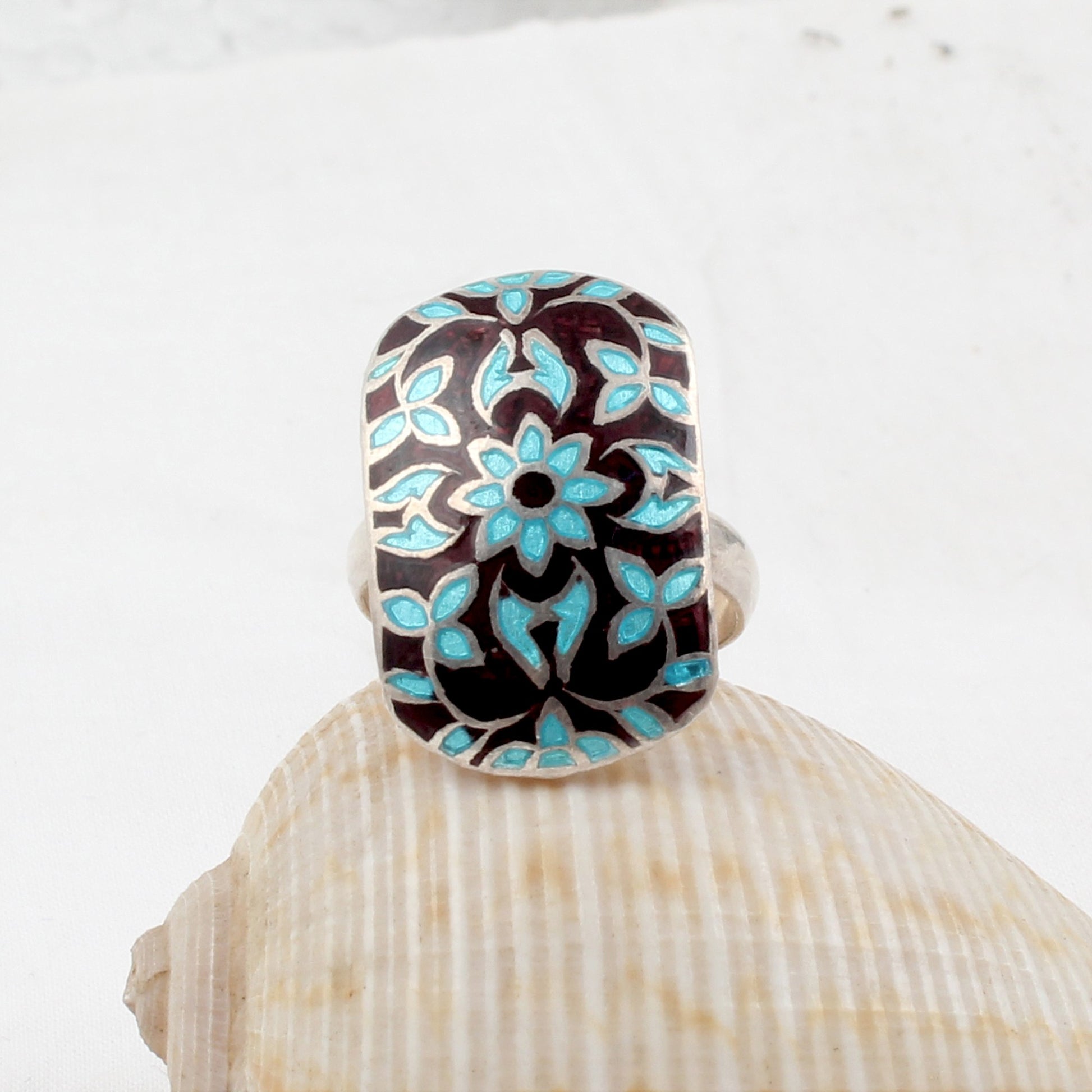 Floral Leaf Enamel Band Ring Handmade 925 Solid Sterling Silver Designer Ring Size 7 USA