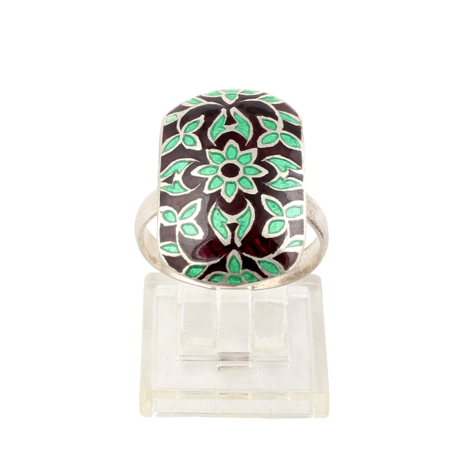 Floral Leaf Enamel Ring Handmade 925 Solid Sterling Silver Ring Birthday Gift For Her Ring Size 10 USA