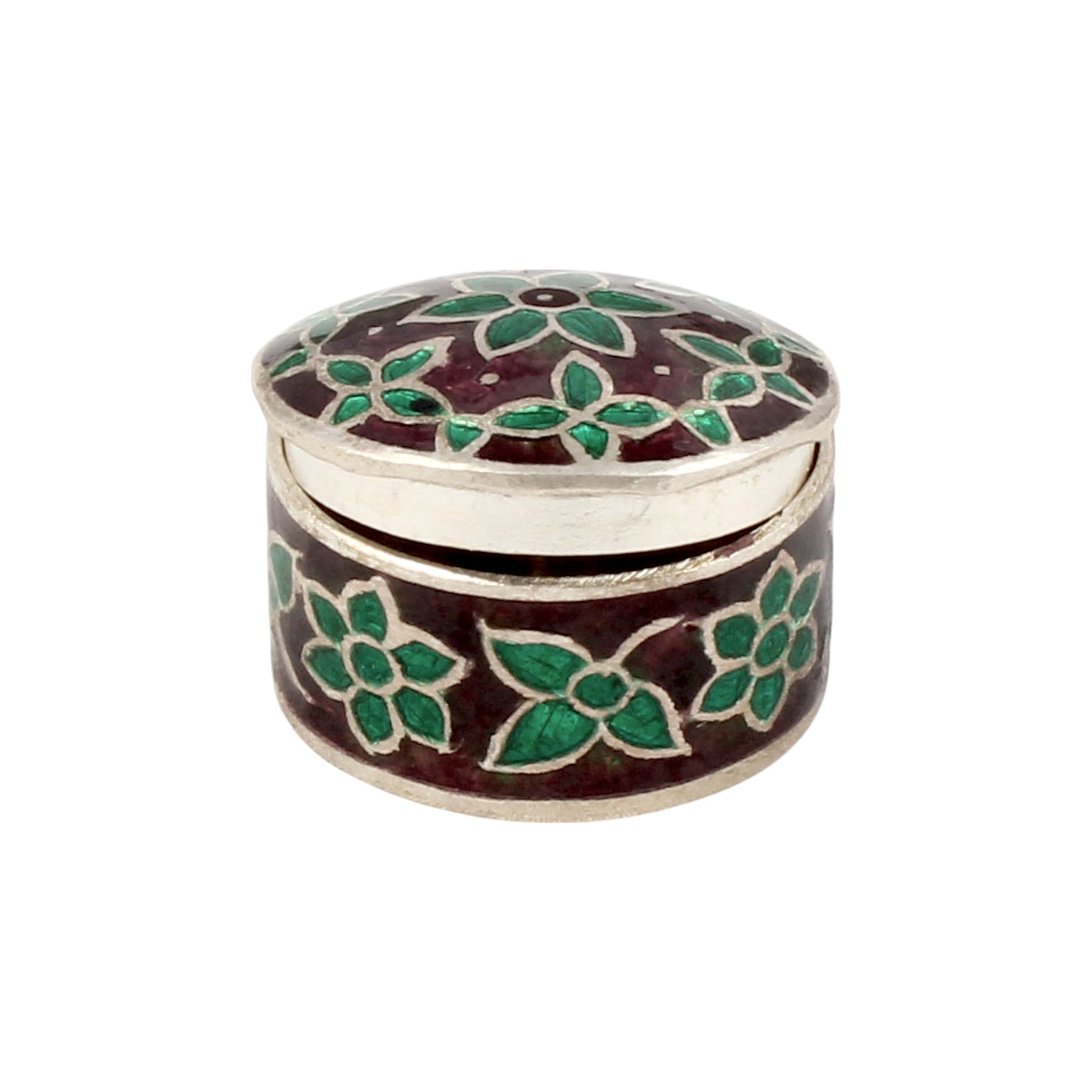 Floral Leaf Enamel Work Box 925 Sterling Silver Jewelry