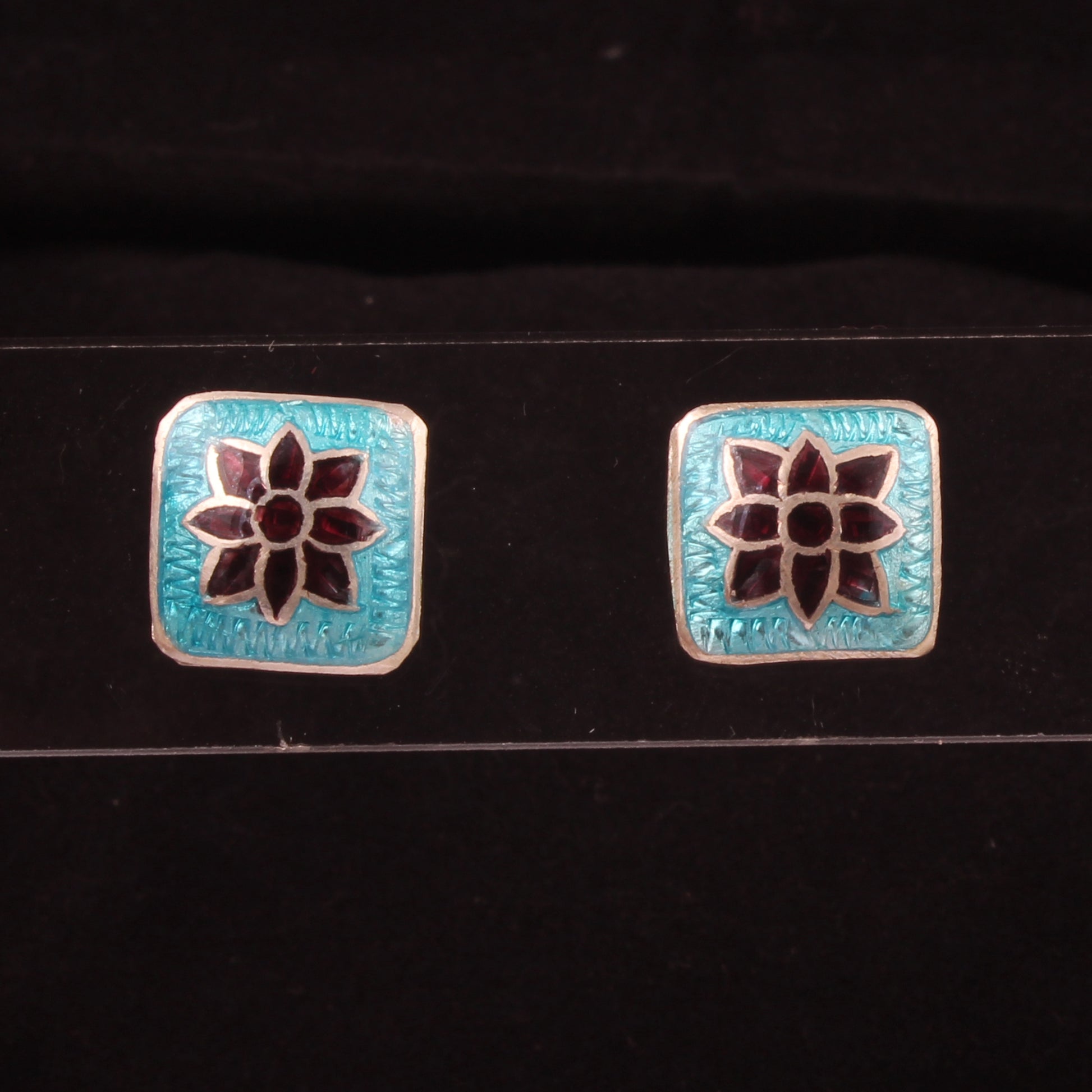 Floral Meenakari Silver Stud Earrings Solid 925 Sterling Silver Earrings Ear Wire Colorful Enamel Earrings