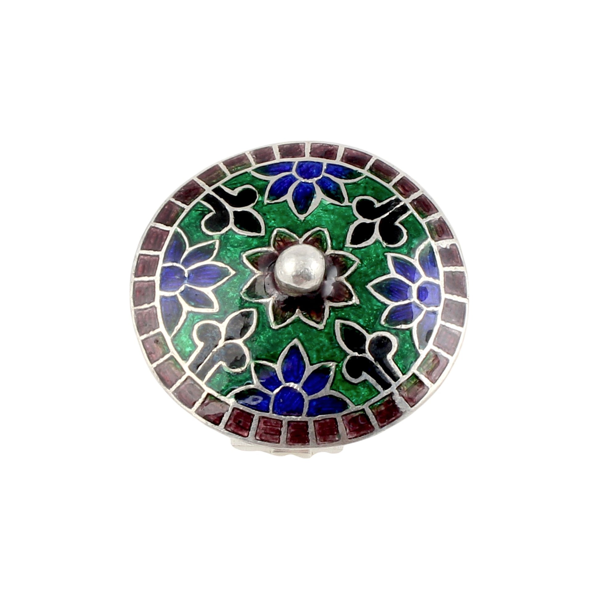 Floral Round Ring Handmade 925 Solid Sterling Silver Enamel Ring Birthday Gift For Her Ring Size 9.5 USA
