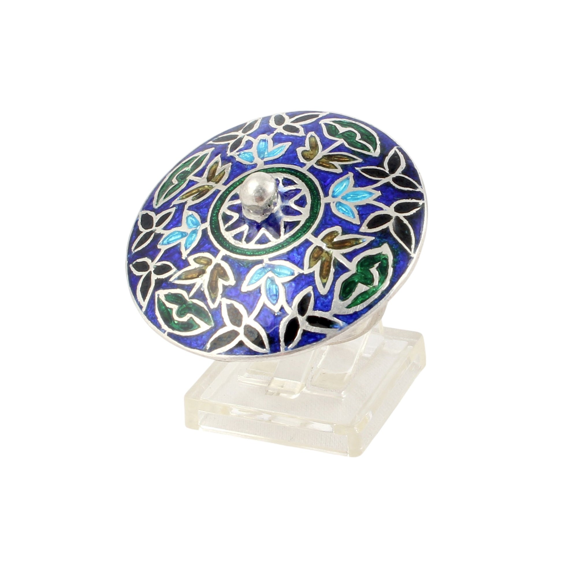 Crafted from 925 sterling silver, this floral round ring combines durability with elegant design. Weighing 11.76 grams, it offers a substantial feel while maintaining comfort. The handmade enamel detailing enhances its intricate floral motif, making it a refined accessory for size 8.75 (USA). Ideal for those seeking expert craftsmanship and timeless style in their jewelry collection.