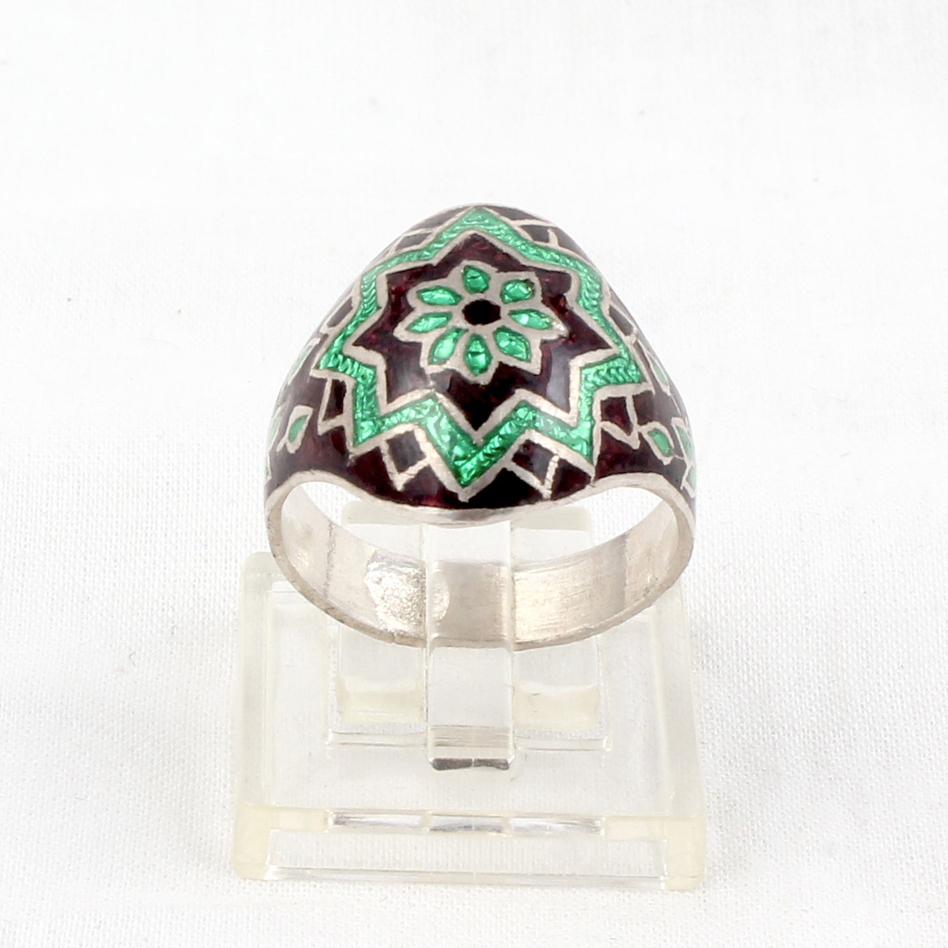 Floral Signet Ring Handmade 925 Solid Sterling Silver Enamel Ring Birthday Gift For Her Ring Size 7.5 USA