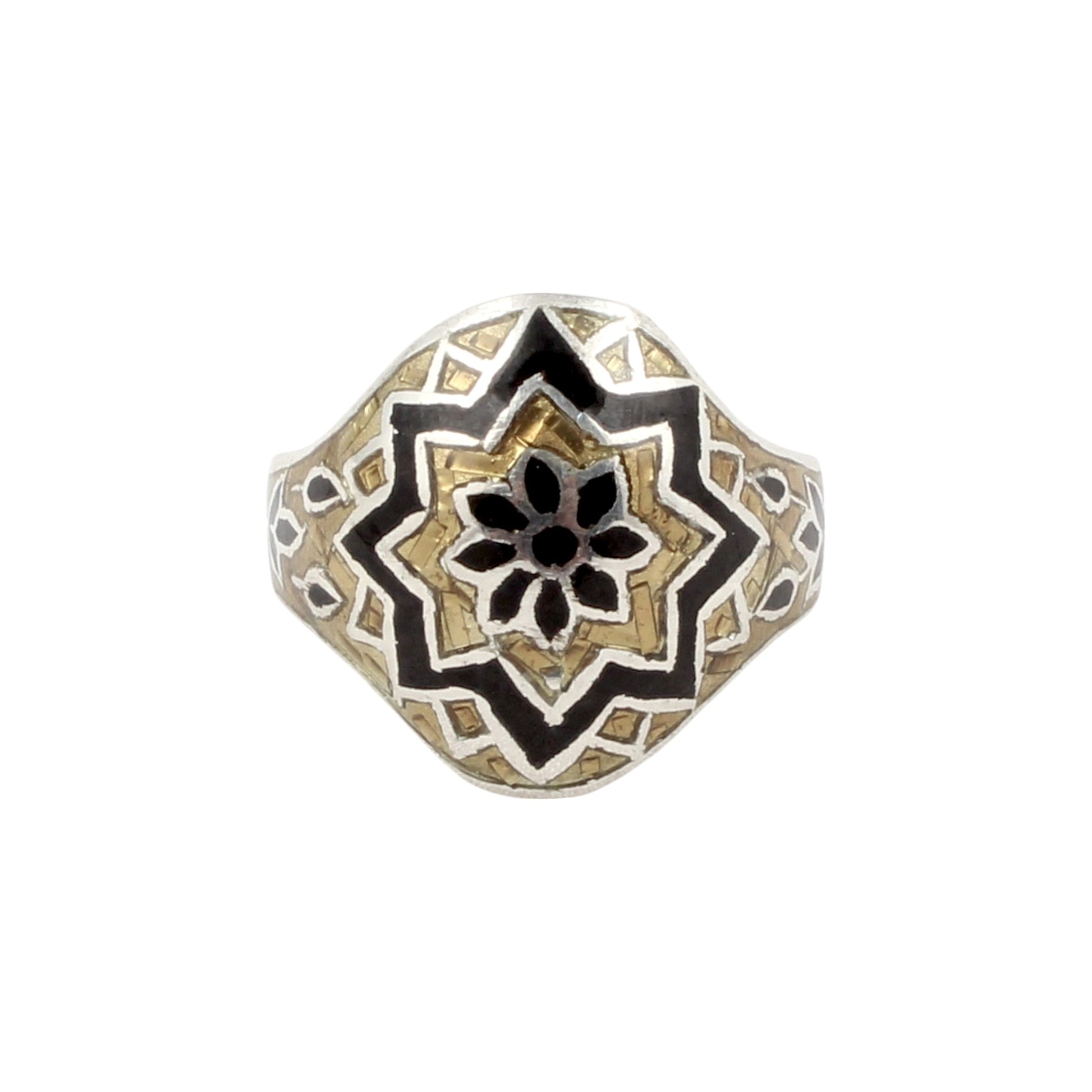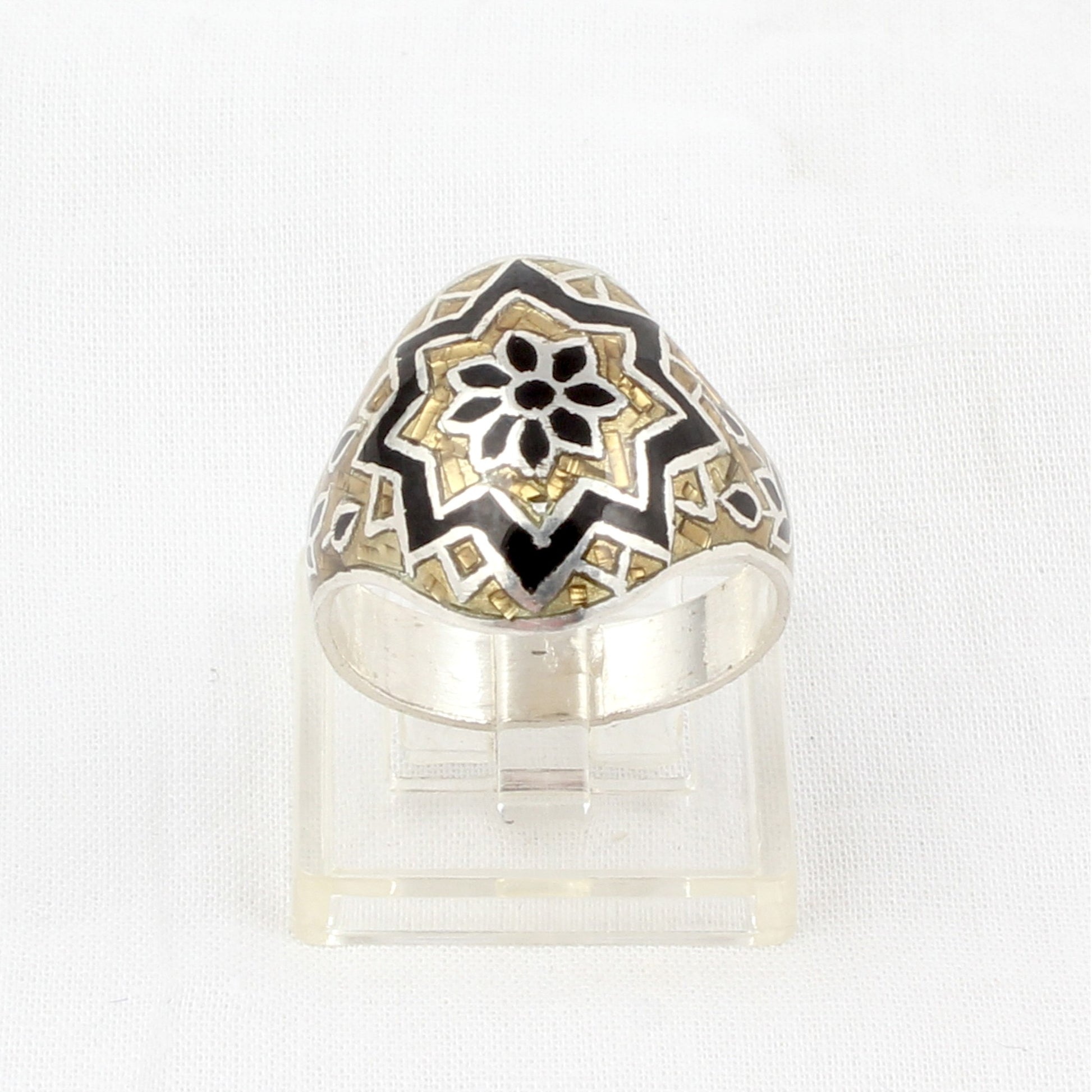 Floral Signet Ring Handmade 925 Solid Sterling Silver Enamel Ring Birthday Gift For Her Ring Size 8.5 USA