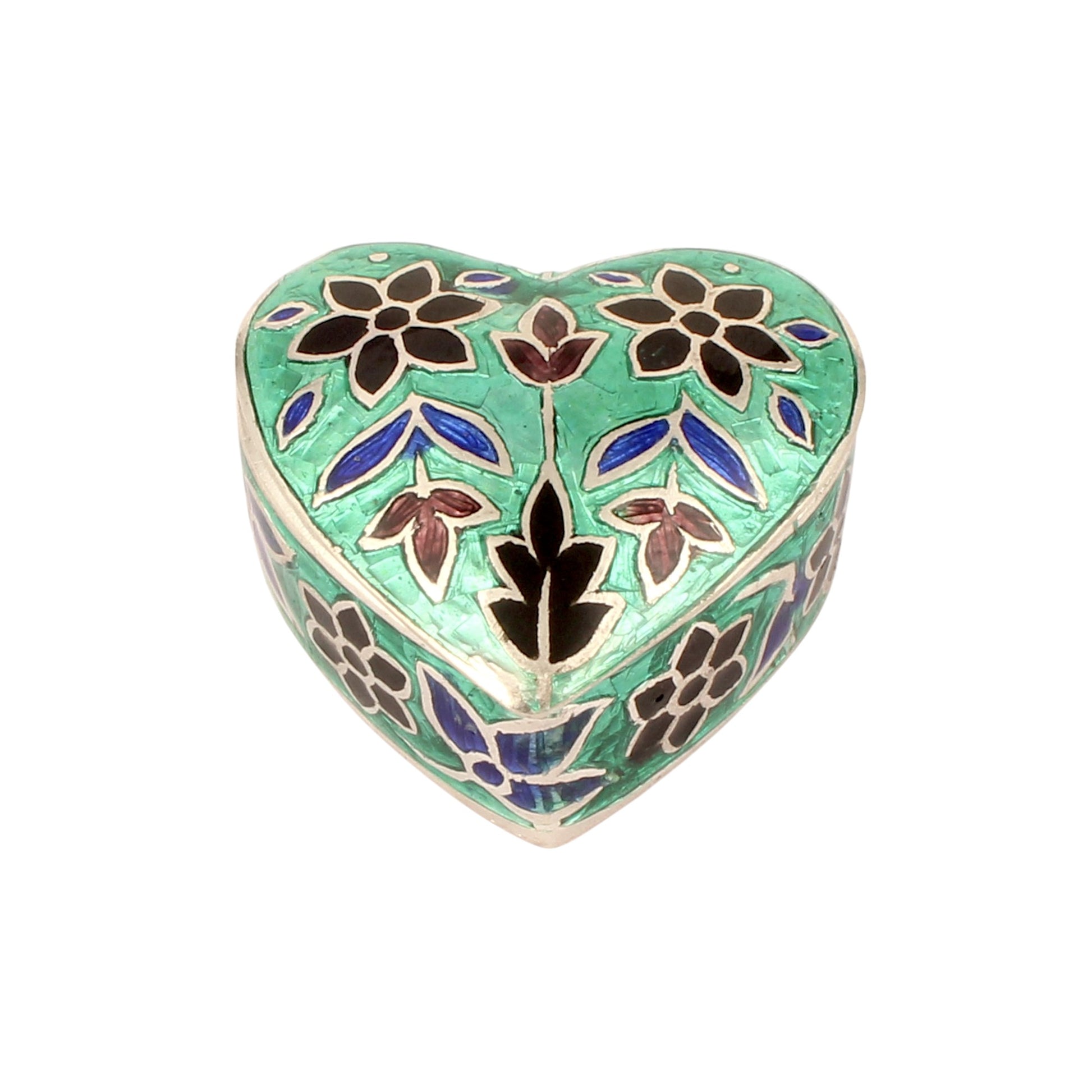 Heart Shape Meenakari Floral Trinket Box Container Handmade Unique Artisan 925 Sterling Silver Sindoor Box