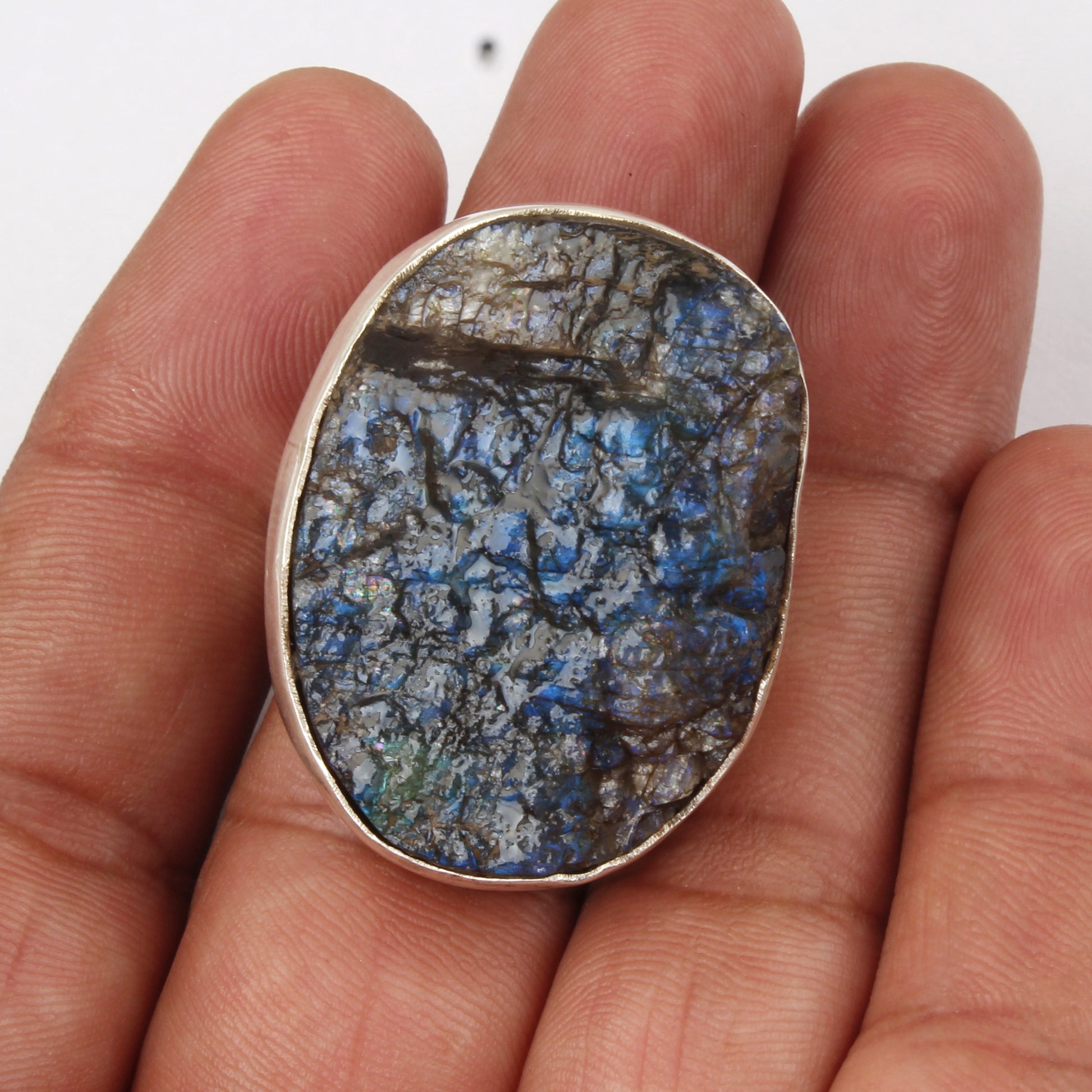 Heavy Rough Labradorite Ring Handmade 925 Sterling Silver Natural Gemstone Ring Raw Stone Jewelry