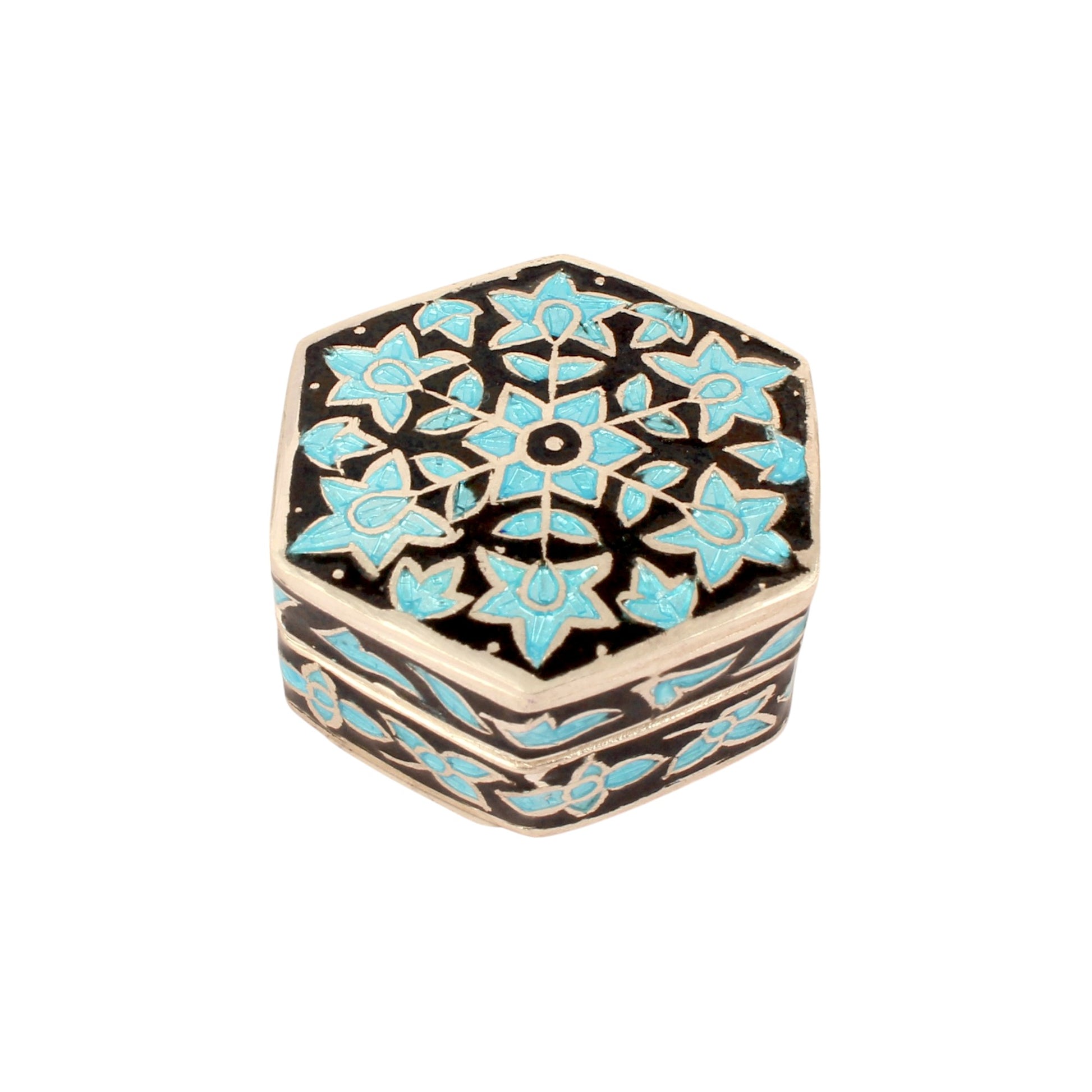 Hexagonal Meenakari Floral Trinket Box Container Handmade Unique Artisan 925 Sterling Silver Sindoor Box