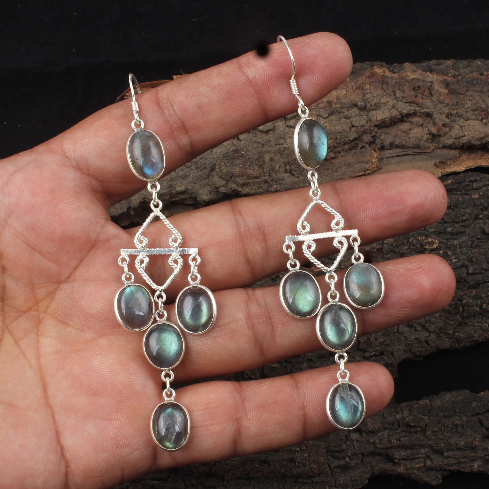 Labradorite Chandelier Earrings Handmade 925 Sterling Silver Dangle Earrings Natural Gemstone Jewelry