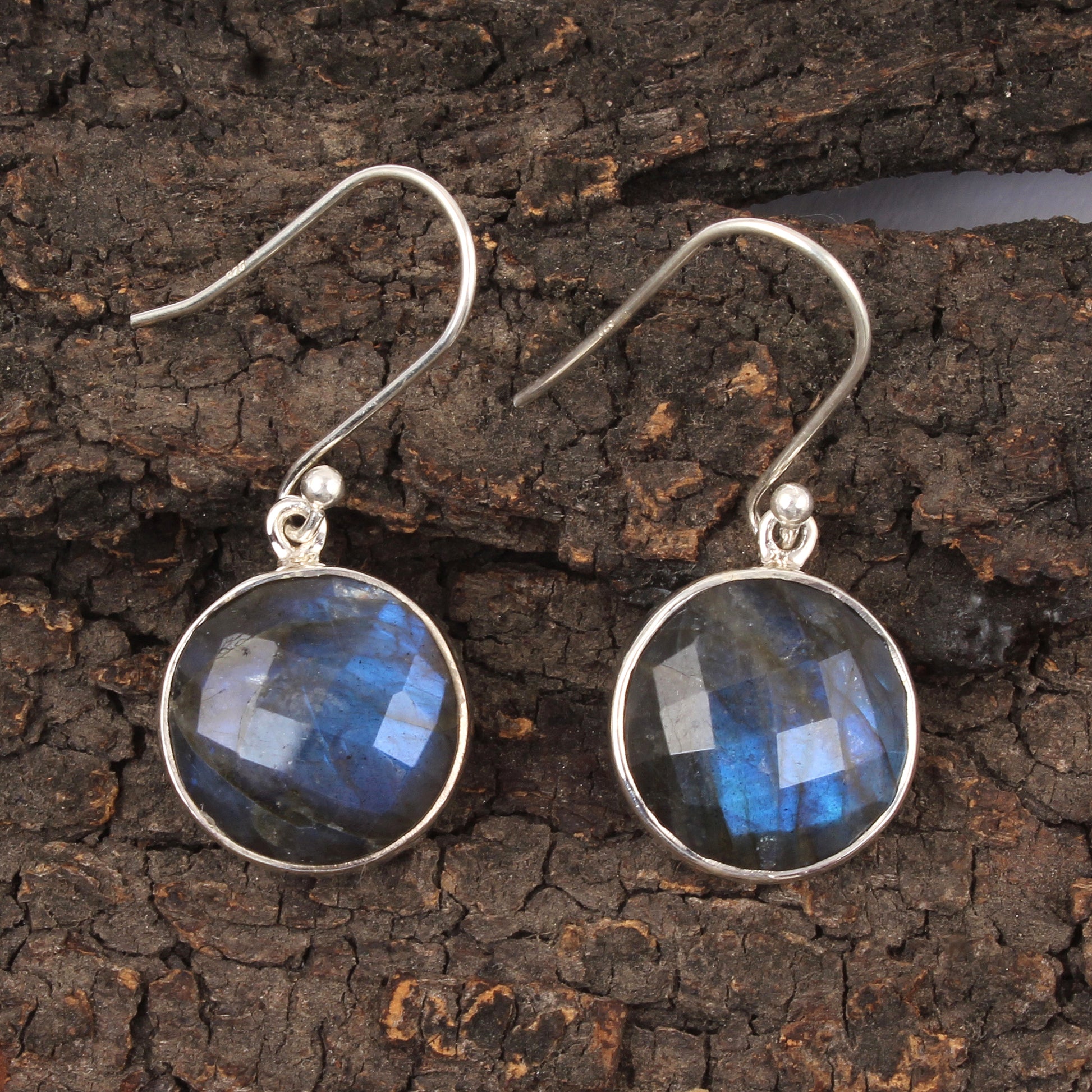Labradorite Earrings Handmade Vintage 925 Sterling Silver Faceted Round Gemstone Earrings Jewelry Gift For Her