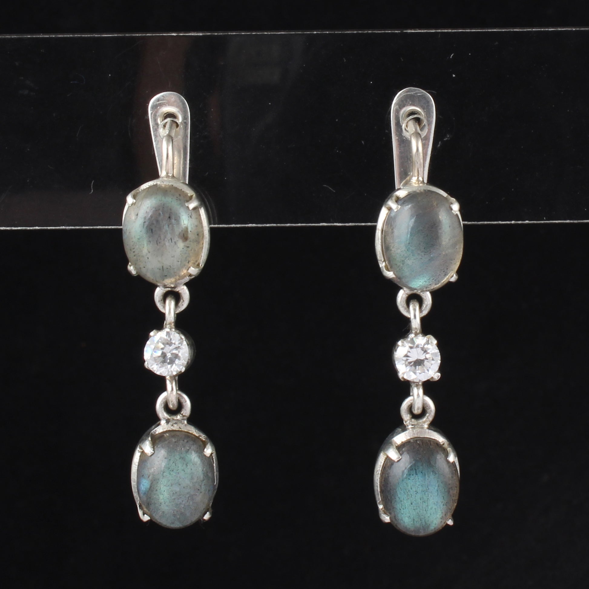 Labradorite Earrings with CZ Handmade Lightweight Dangle 925 Sterling Silver Natural Gemstone Earrings