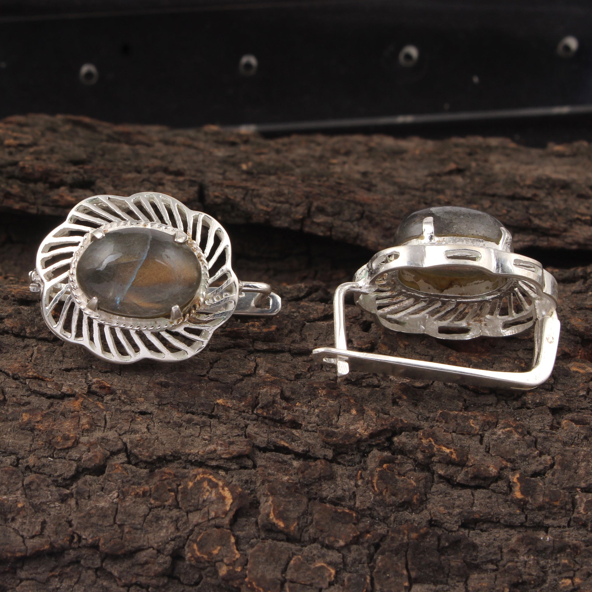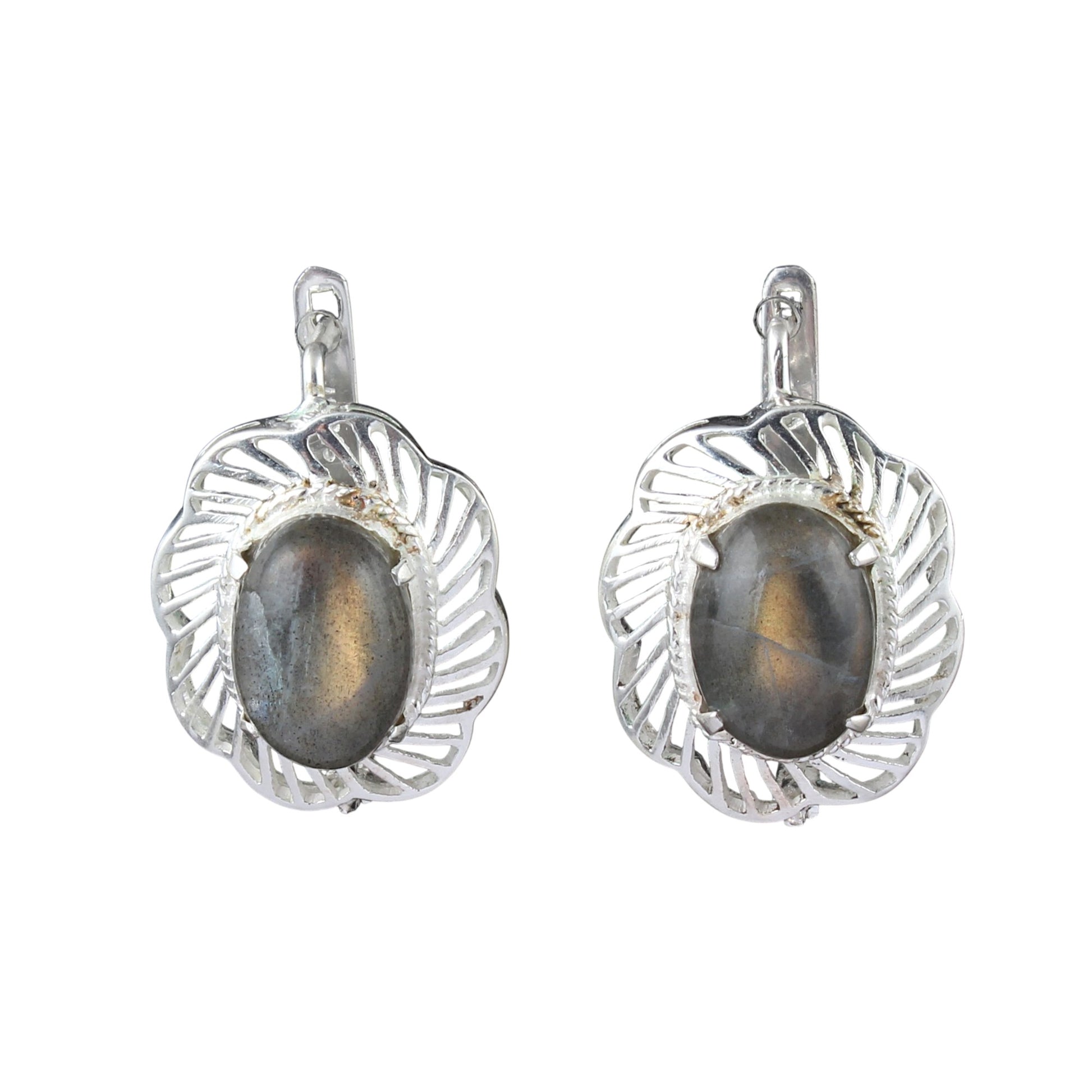 Labradorite Earrings with Russian Lock Designer Openwork 925 Sterling Silver Earring Handmade Prong Setting Earrings