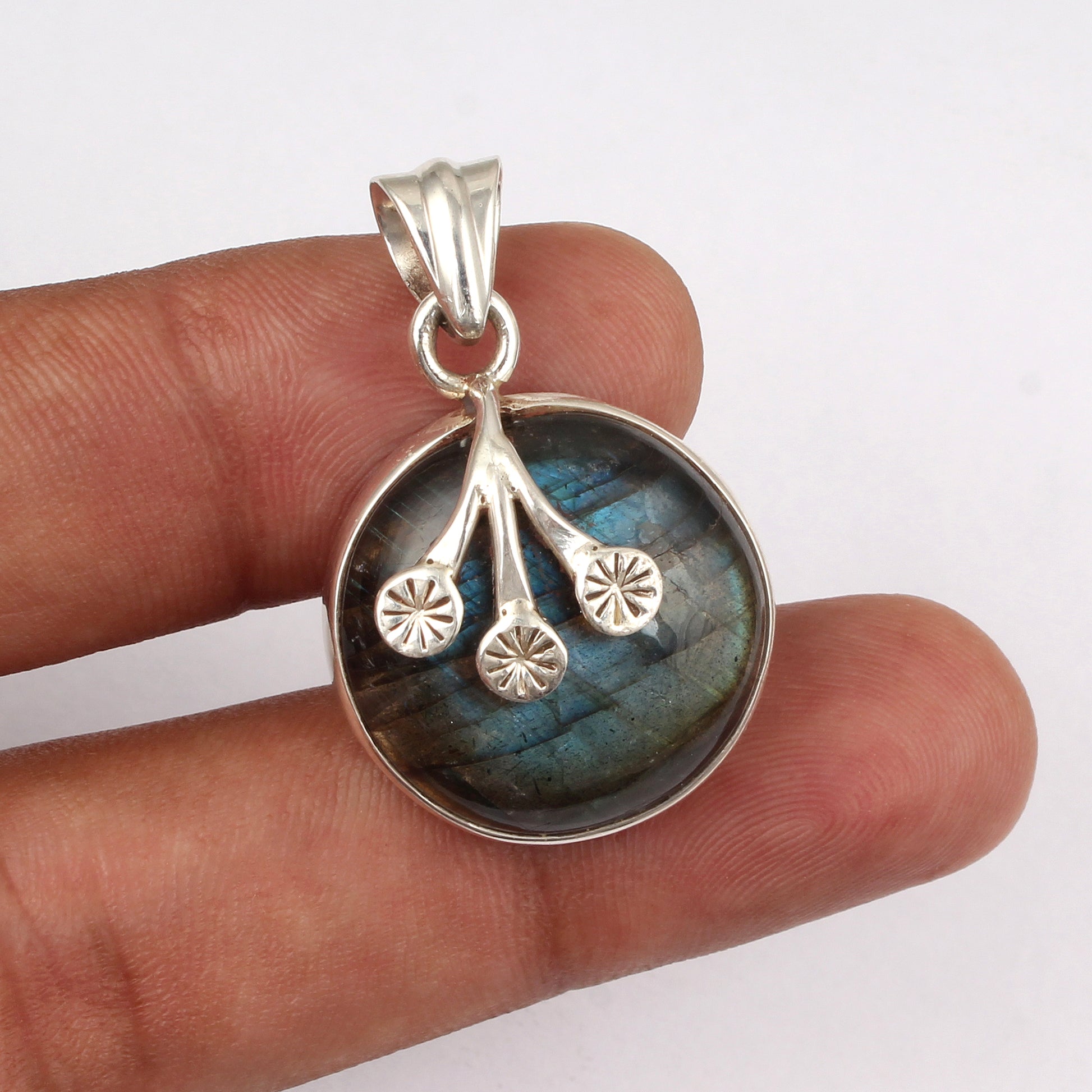 Labradorite Gemstone Pendant Handmade 925 Sterling Silver Jewelry Pendant Floral Motif Silver Jewelry For Gift