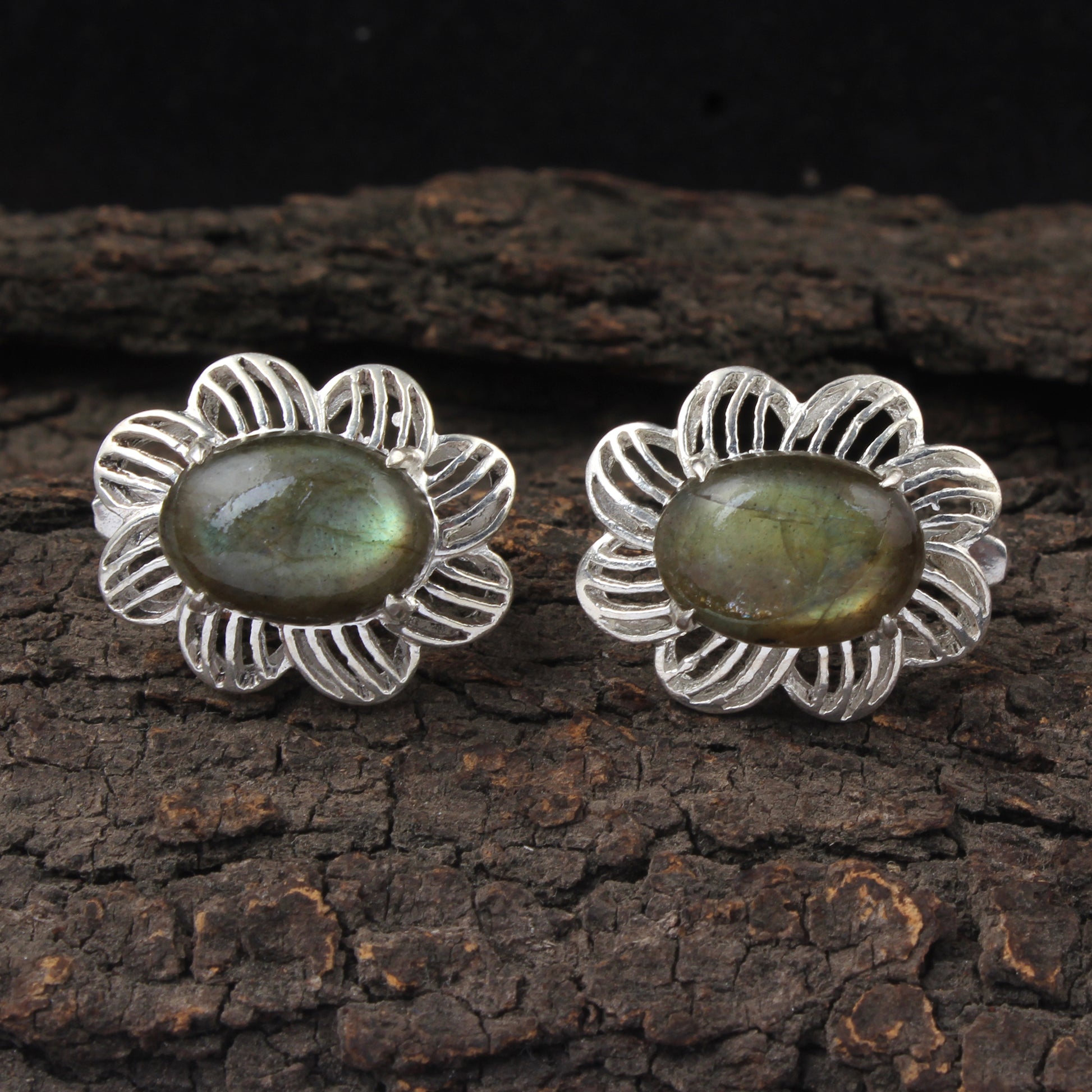 Labradorite Openwork Earrings with Russian Lock 925 Sterling Silver Earring Handmade Prong Setting Earrings