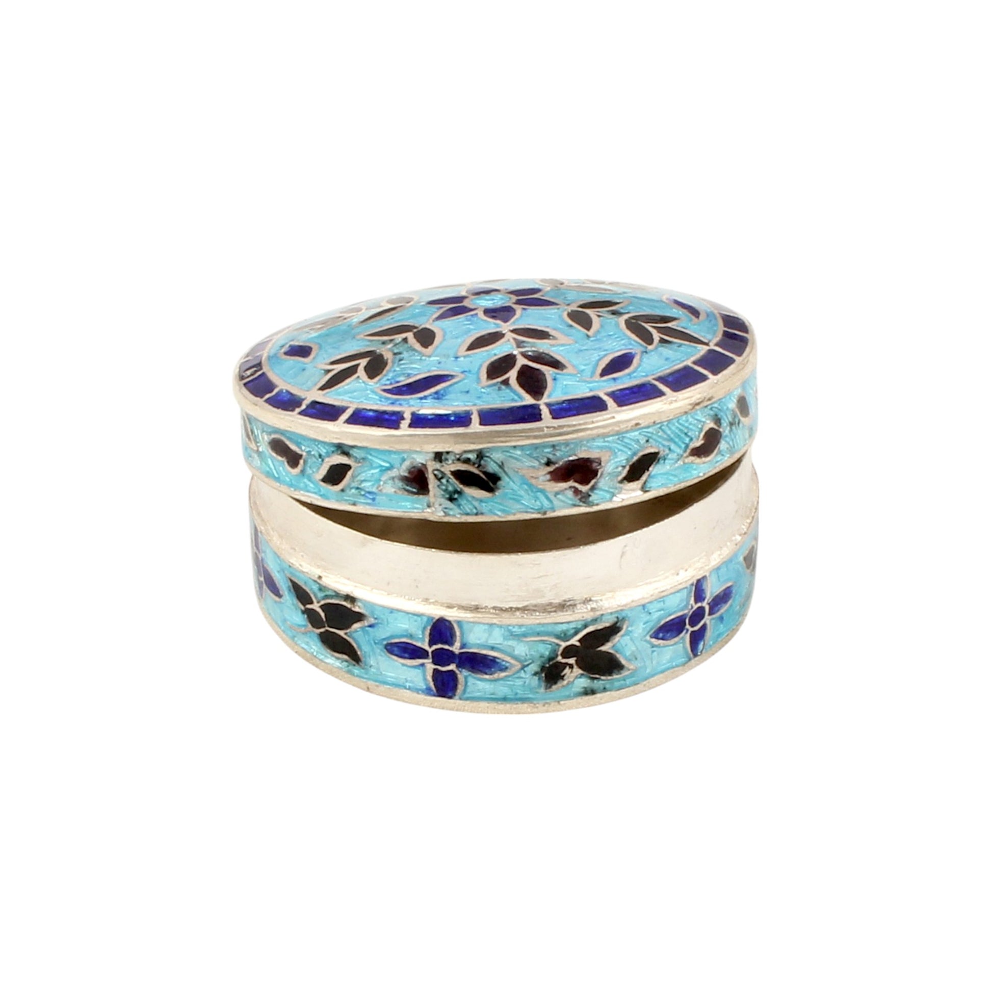 Crafted from high-quality 925 sterling silver, this Leaf Enamel Work Box combines durability with elegant design. Measuring 1.5 inches, it offers a compact yet practical size for storing your precious jewelry. Weighing 22.33 grams, the box balances substantial feel with portability. The intricate enamel work adds a refined artistic touch, making it an expert choice for safeguarding and showcasing your treasured pieces.
