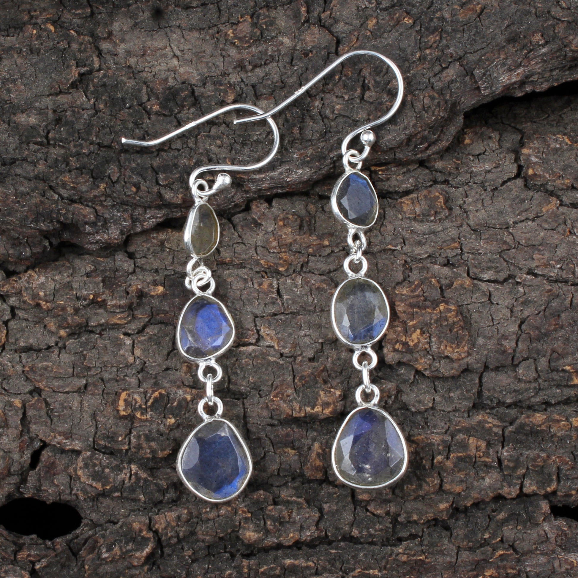 Long Dangle Labradorite Earrings Handmade Bezel 925 Sterling Silver Faceted Gemstone Earrings Jewelry