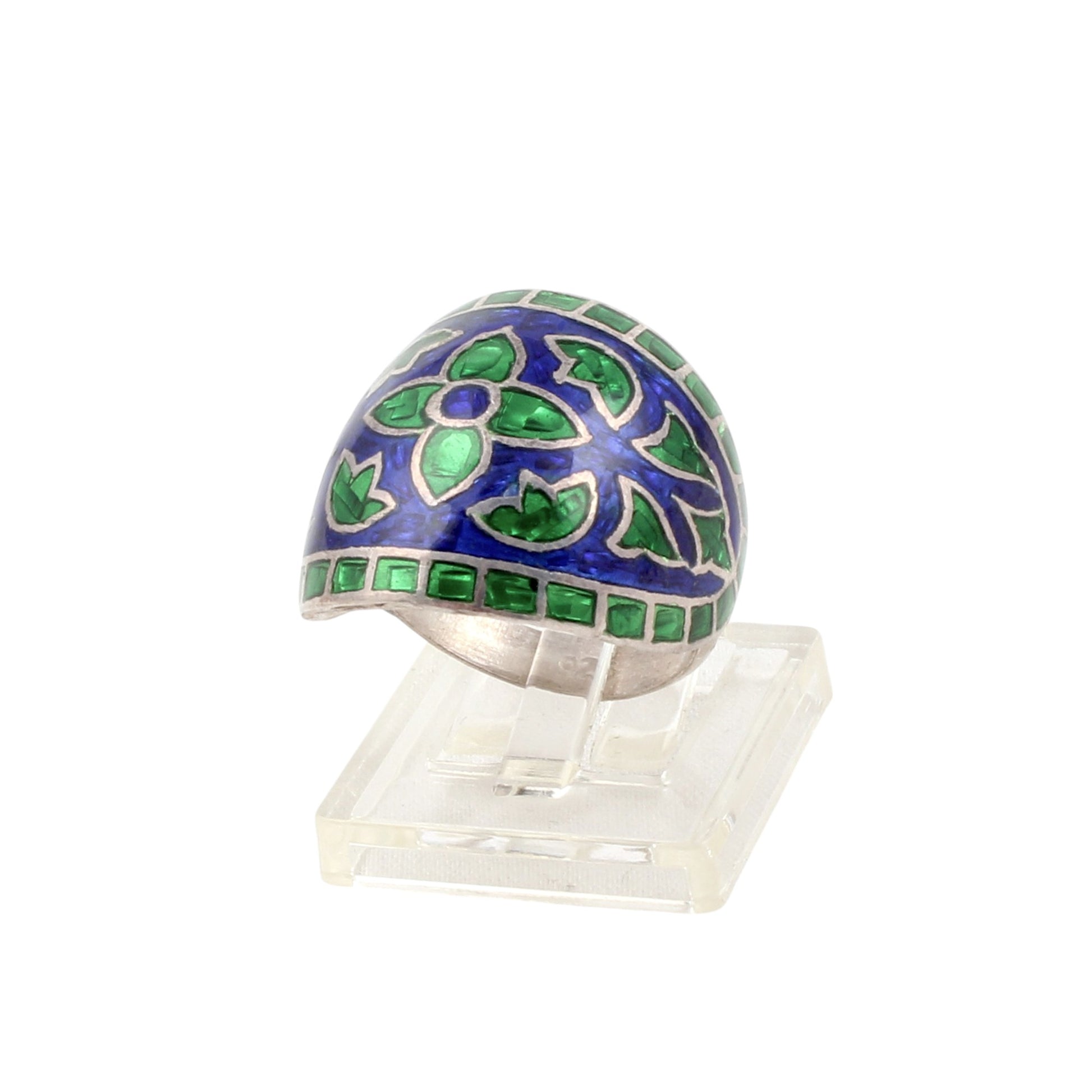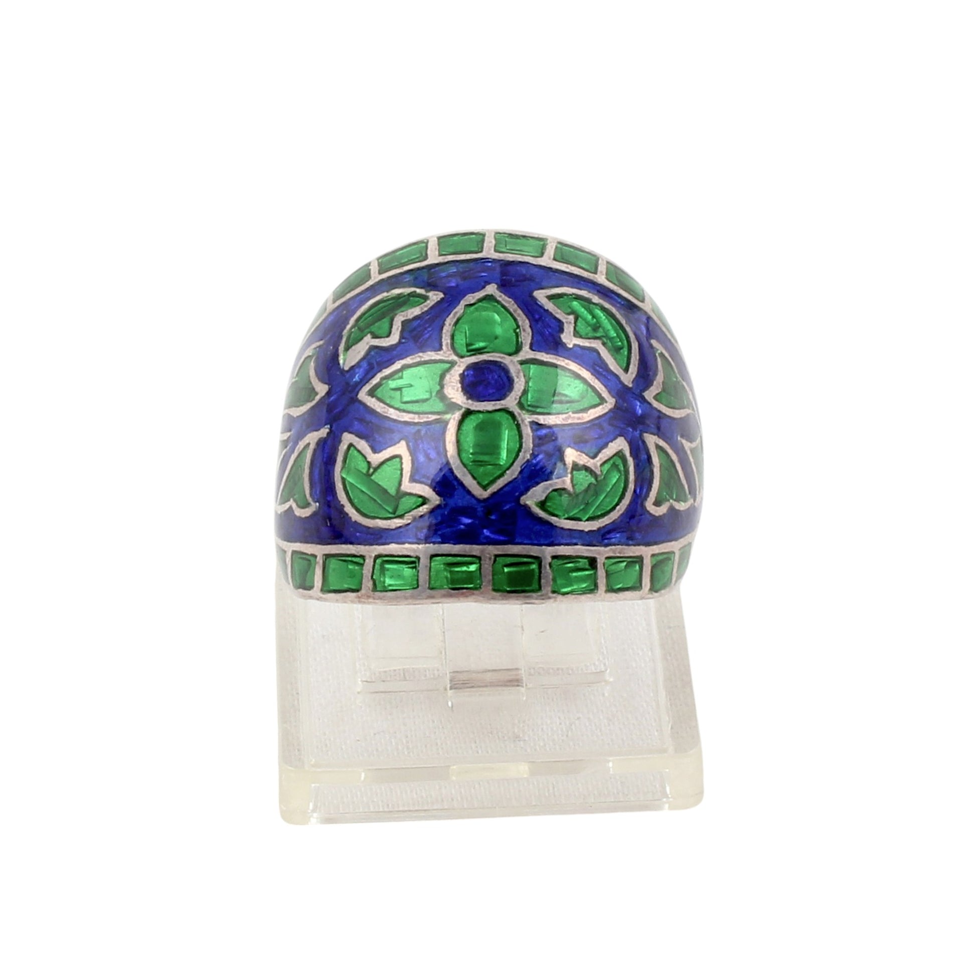Crafted from 925 sterling silver, this Meenakari art ring showcases exquisite handmade enamel work, reflecting traditional artistry with a contemporary touch. Weighing 5.36 grams, it offers a balanced feel suitable for daily wear. Designed in a US size 7, this designer piece combines durability with intricate detailing, making it a refined addition to any jewelry collection.