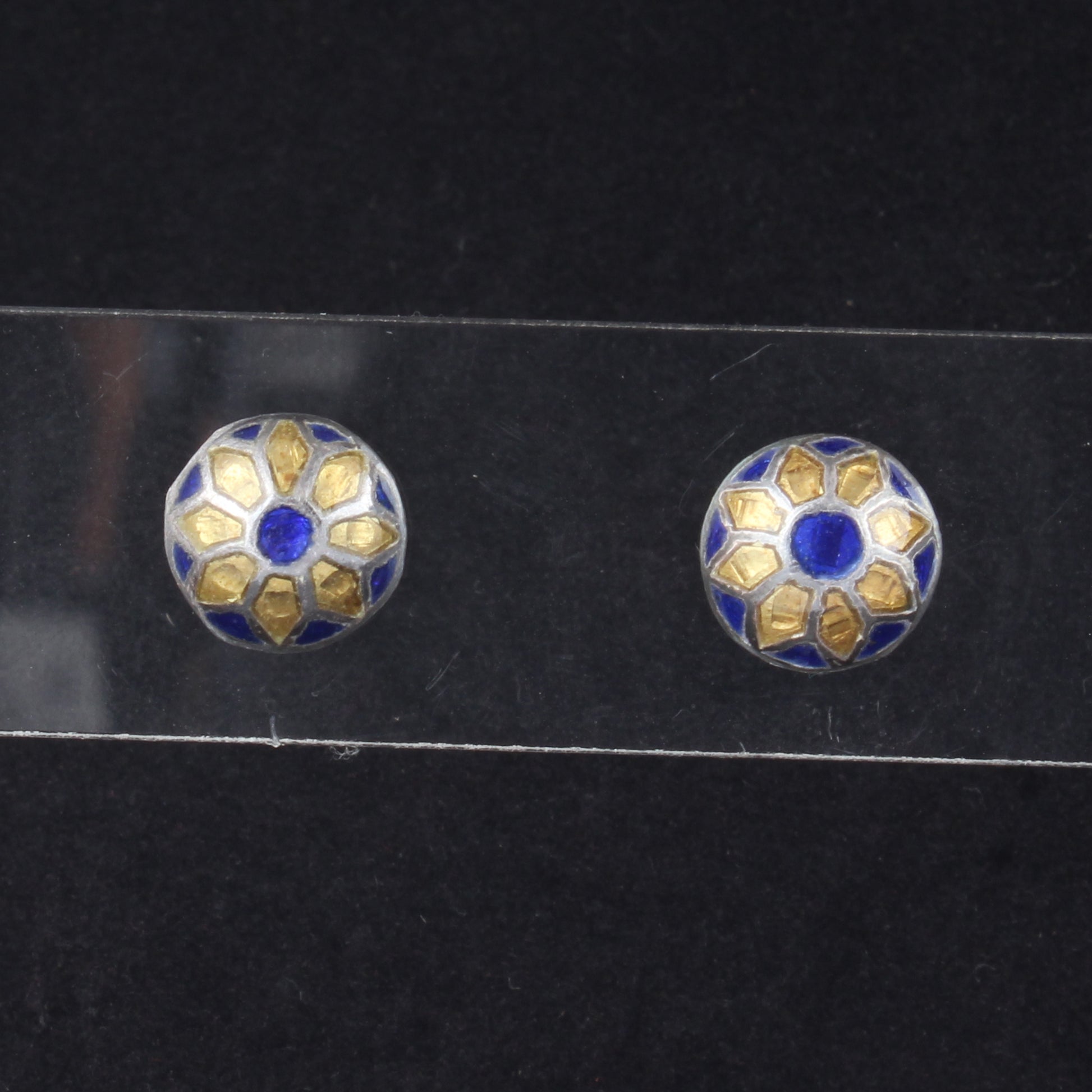 Minimalist Enamel Stud Earrings Floral Meenakari Silver Stud Earrings Handmade 925 Sterling Silver Studs