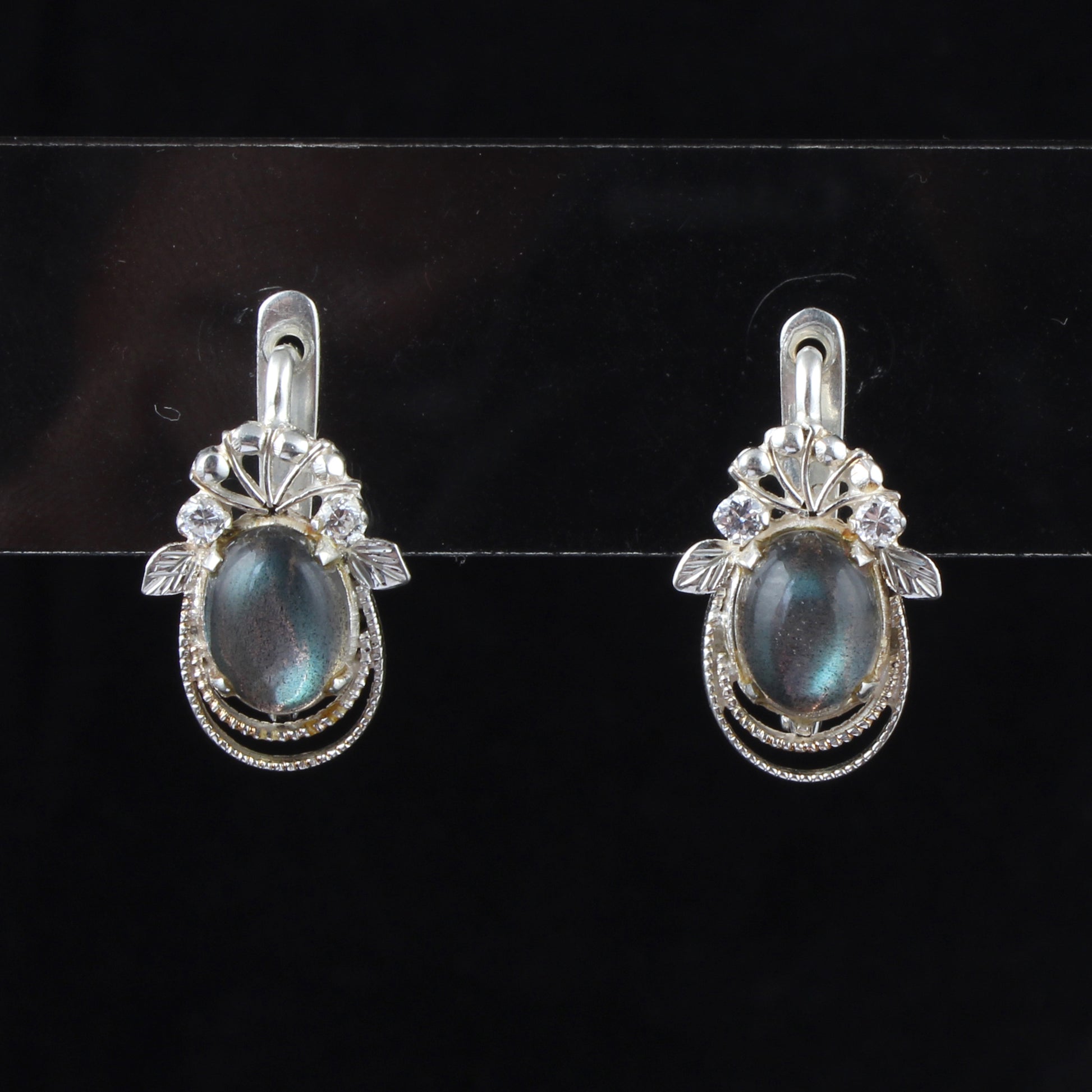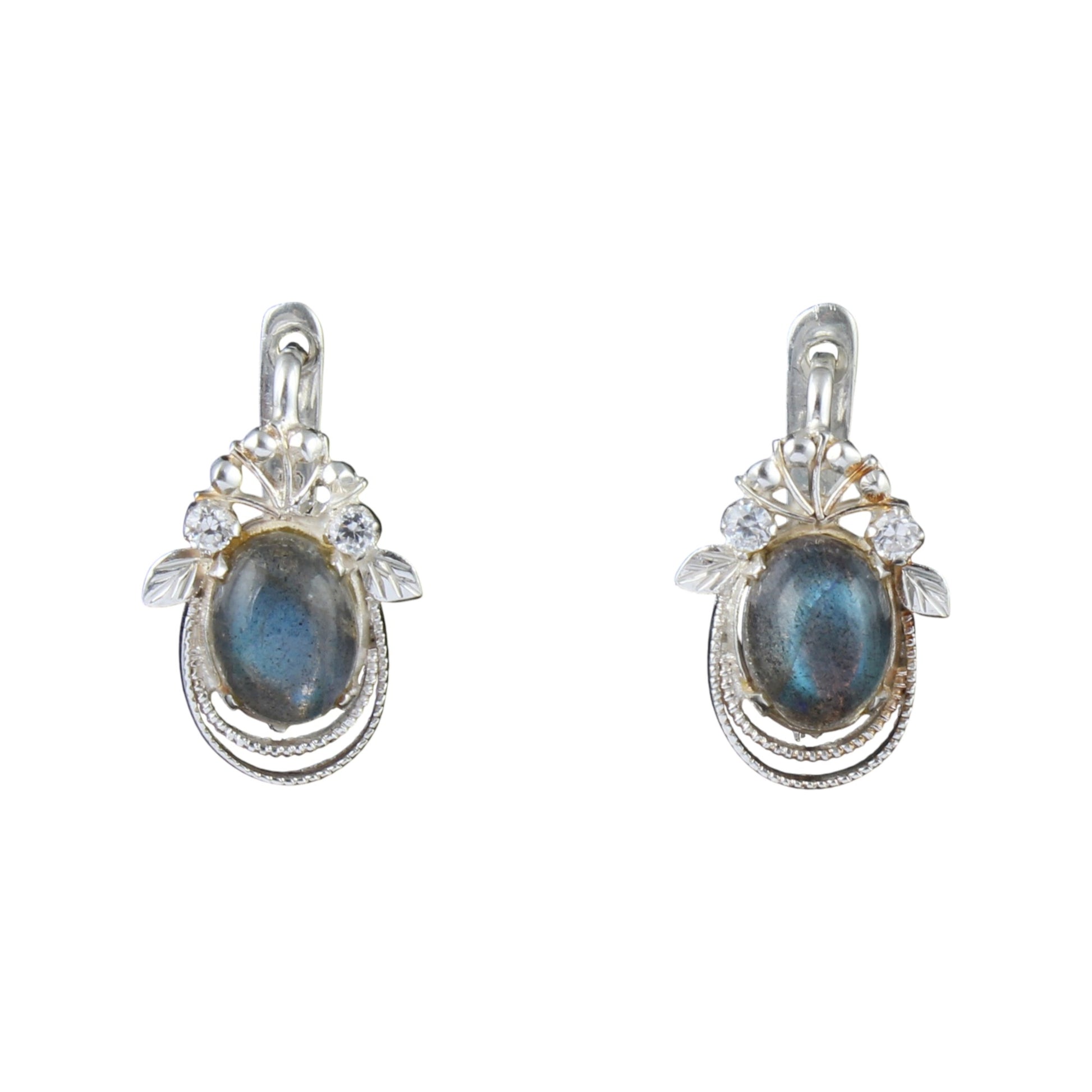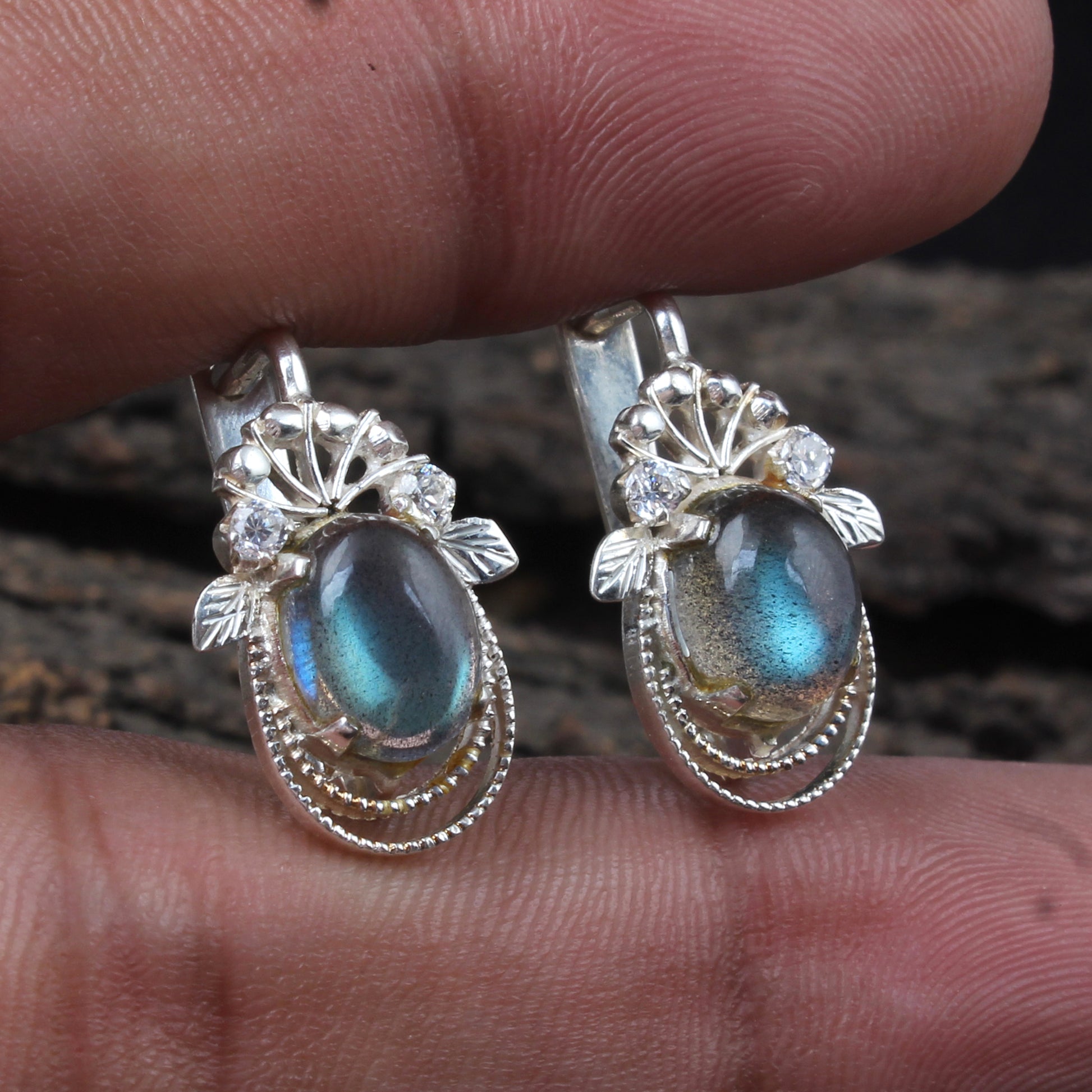 Minimalist Labradorite Earrings with CZ Handmade Lightweight 925 Sterling Silver Natural Gemstone Earrings