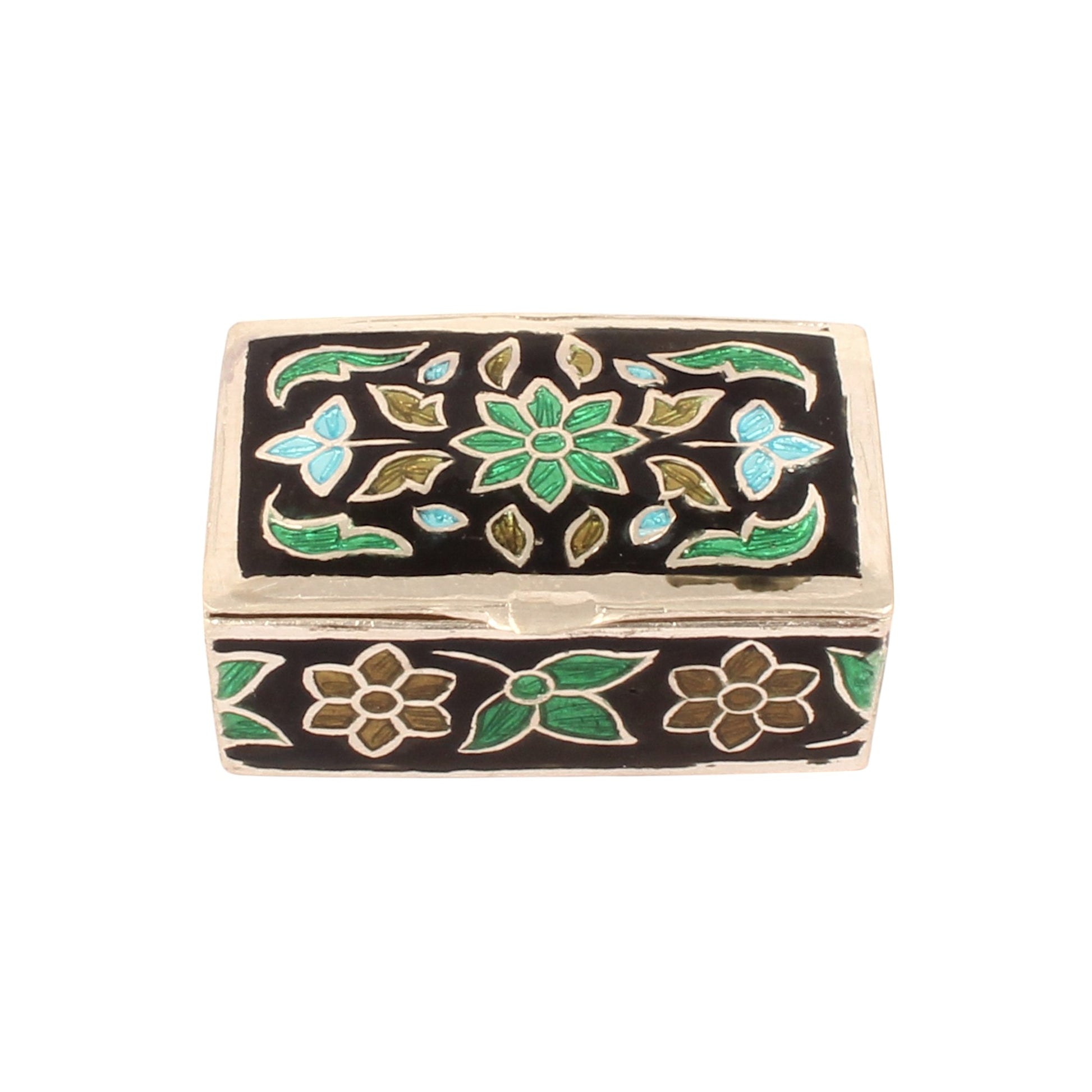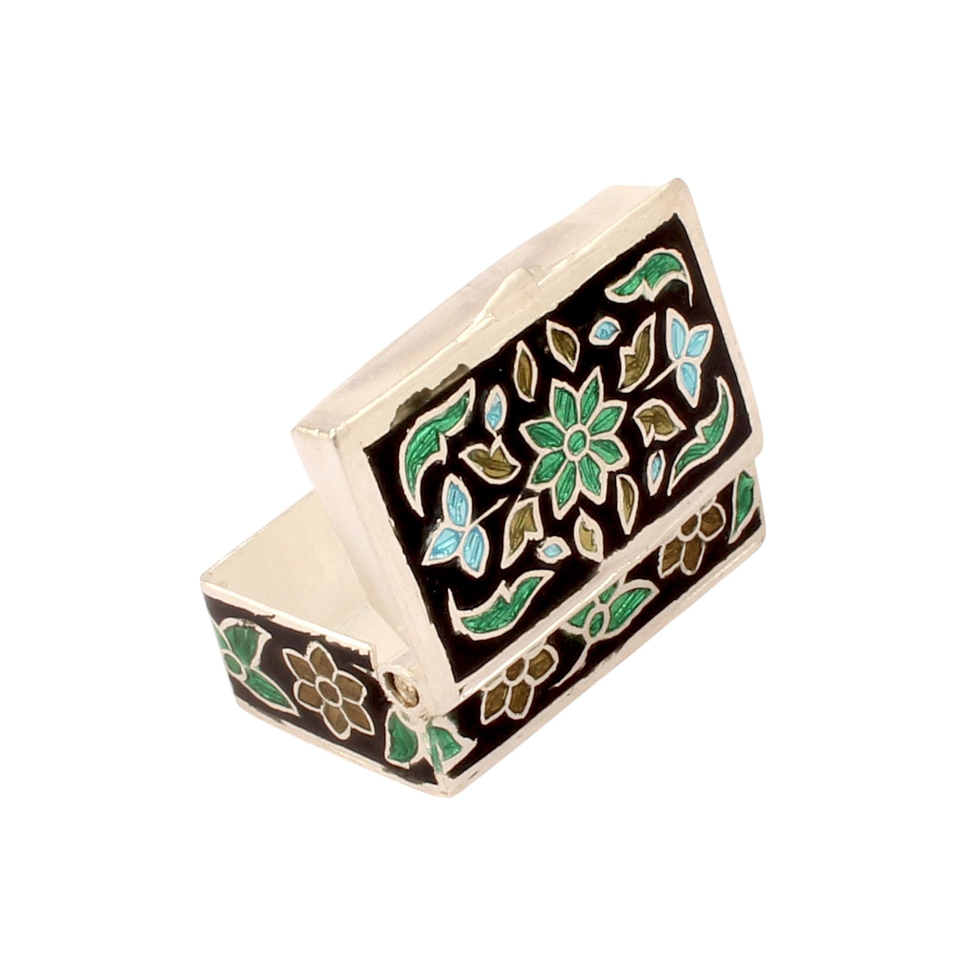 Multicolor Floral Leaf Enamel Work Box 925 Sterling Silver Enamelled Jewelry
