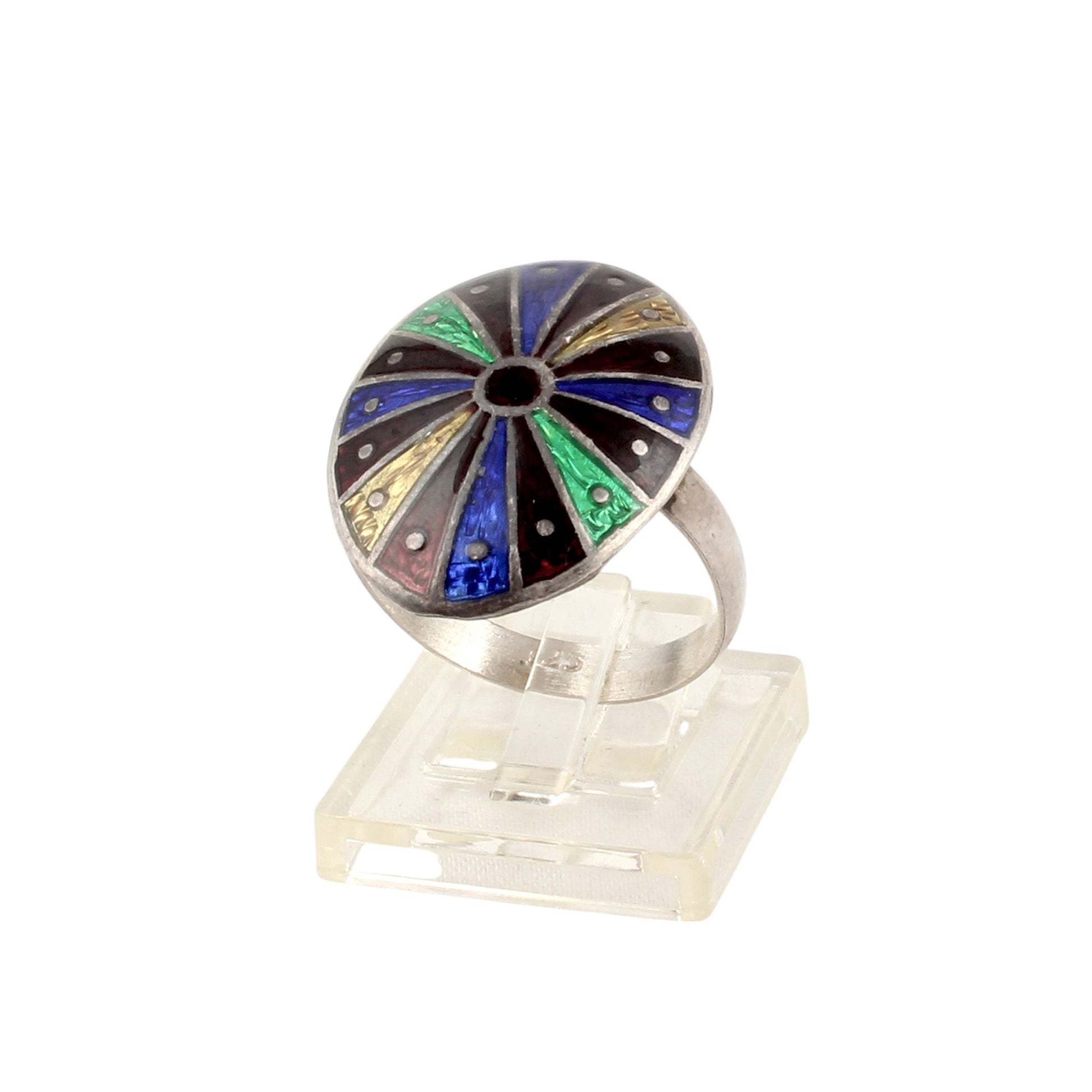 Multicolor Oval Signet Ring Handmade 925 Solid Sterling Silver Enamel Ring Size 10 USA