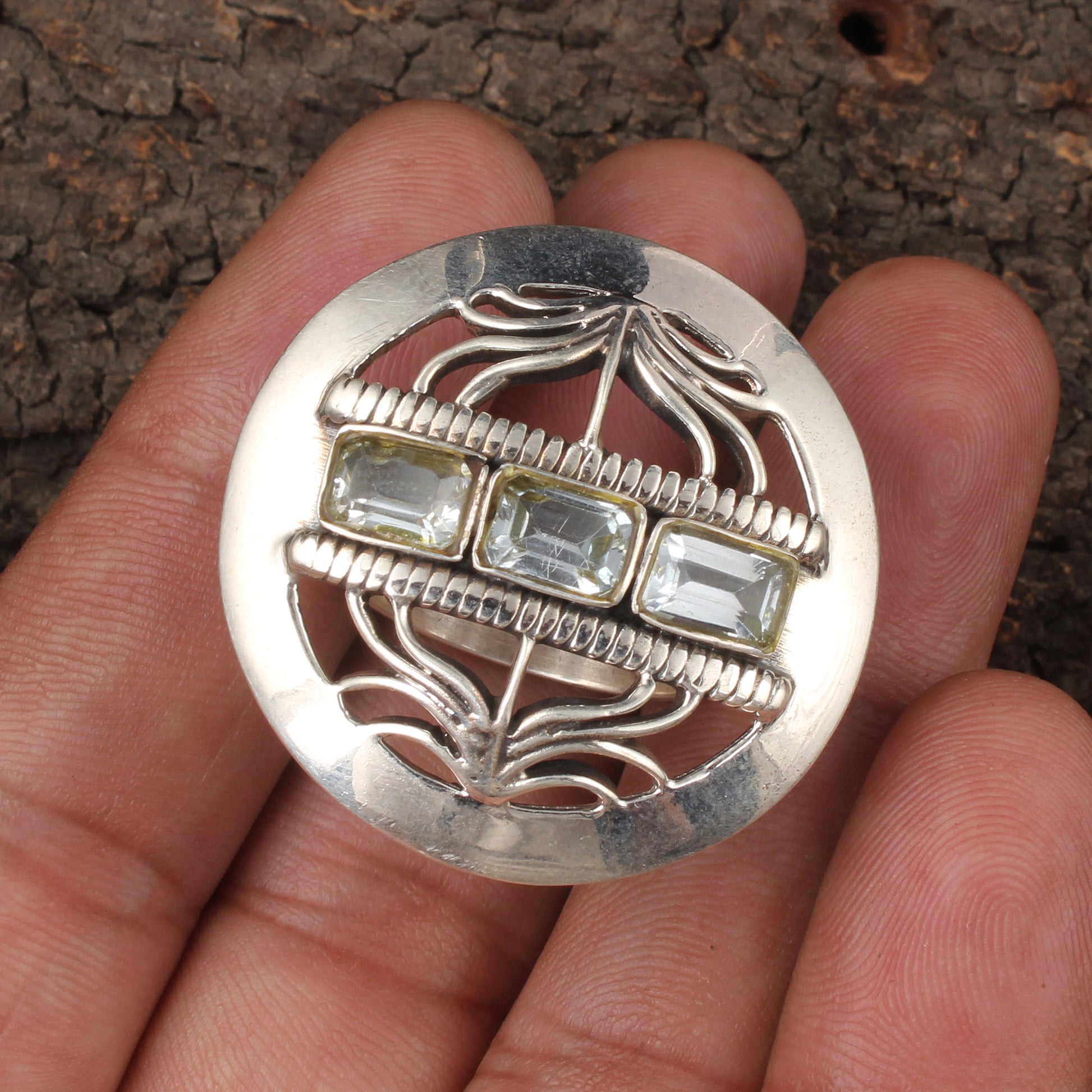 Natural Blue Topaz Ring Handmade Designer Boho 925 Sterling Silver Artisan Gemstone Ring Birthstone Jewelry