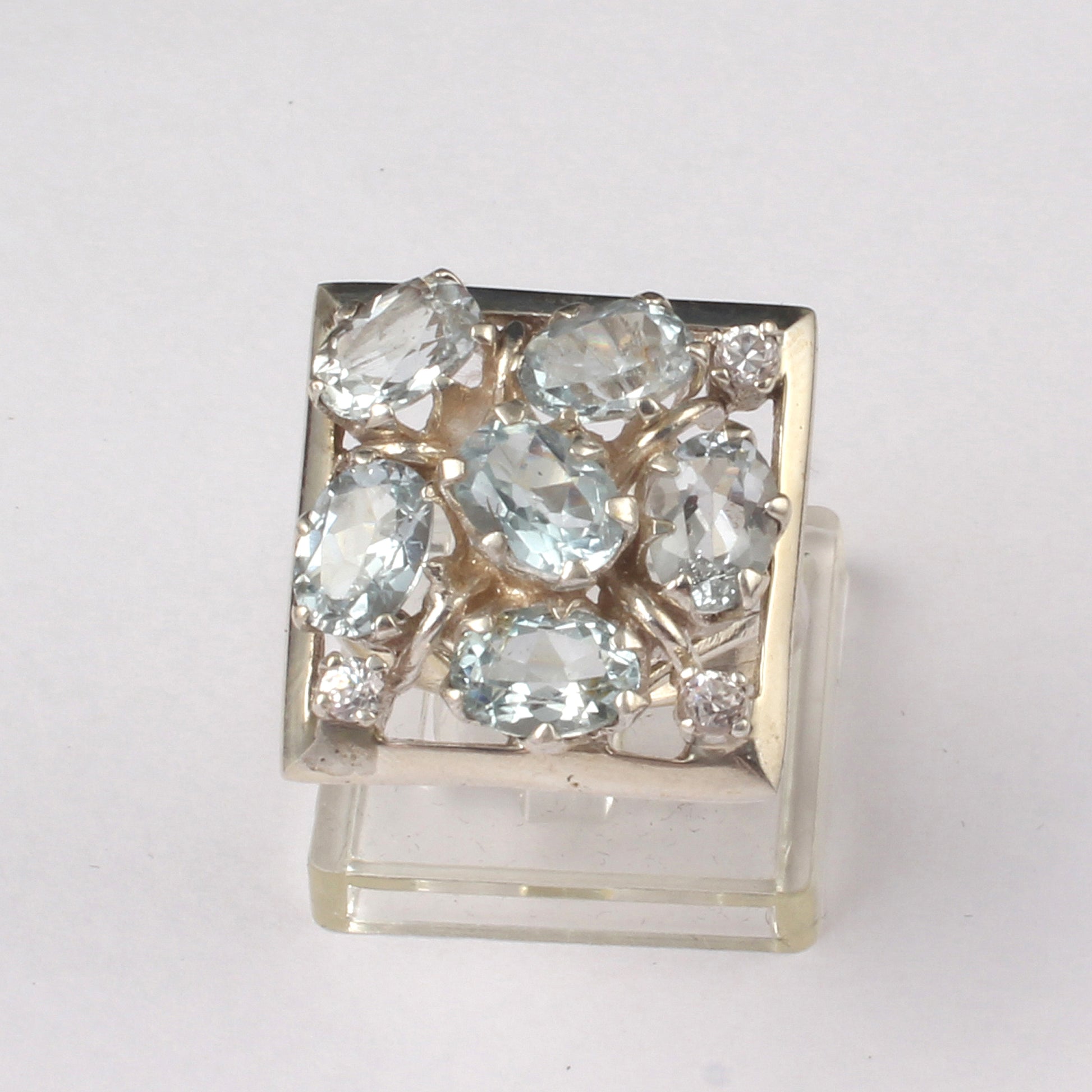 Natural Blue Topaz Ring Square Shape 925 Sterling Silver Handmade Cluster Prong Setting Ring December Birthstone Jewelry
