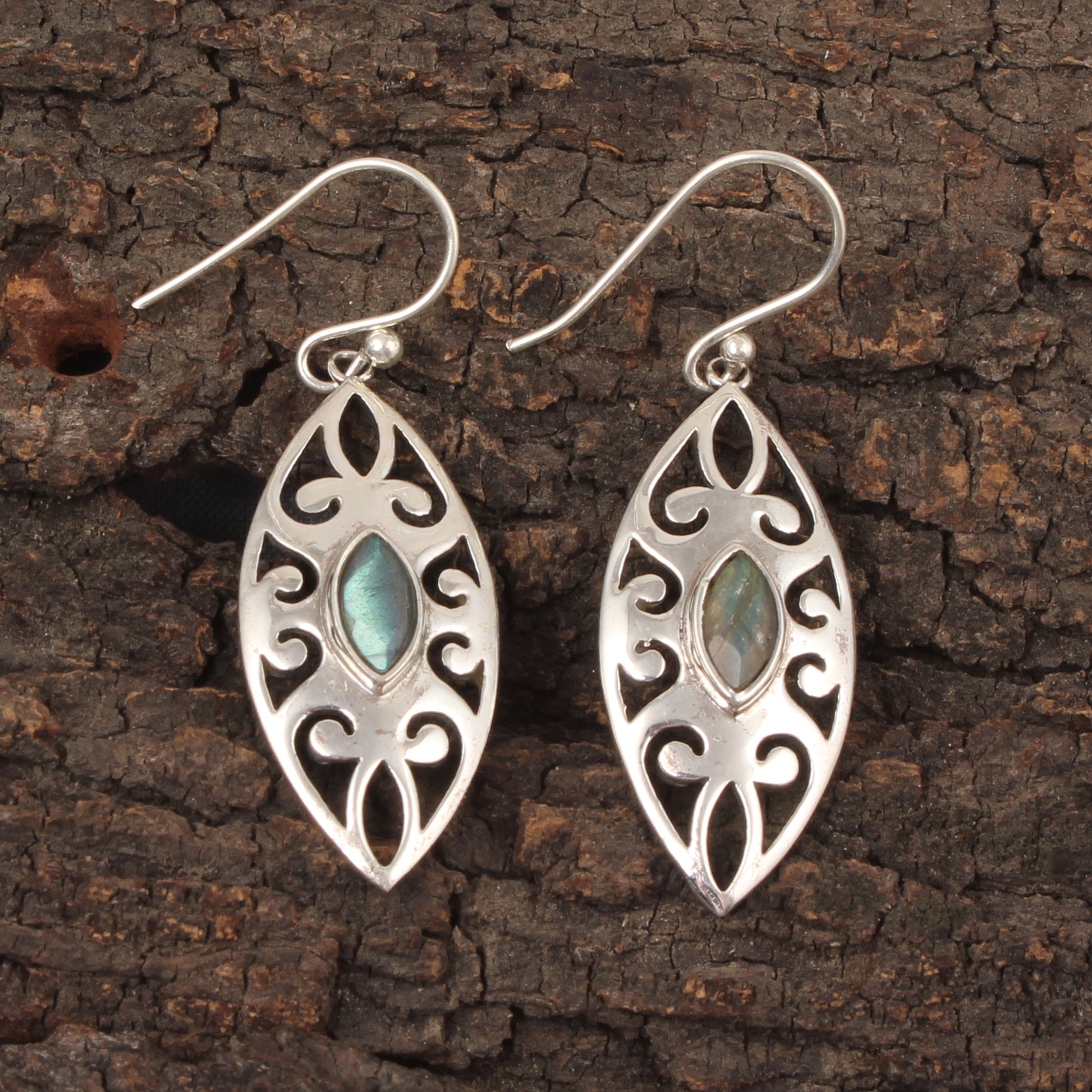 These 925 sterling silver earrings showcase expertly faceted natural labradorite gemstones, each measuring 8x4mm in an elegant marquise cut. Handmade with precision, the earrings measure 4.6 x 1.4 cm and weigh 4.84 grams, offering a lightweight yet durable accessory. Known for its captivating play of colors, the labradorite adds unique visual appeal, making these earrings a refined choice for those who appreciate artisan craftsmanship and quality gemstones.