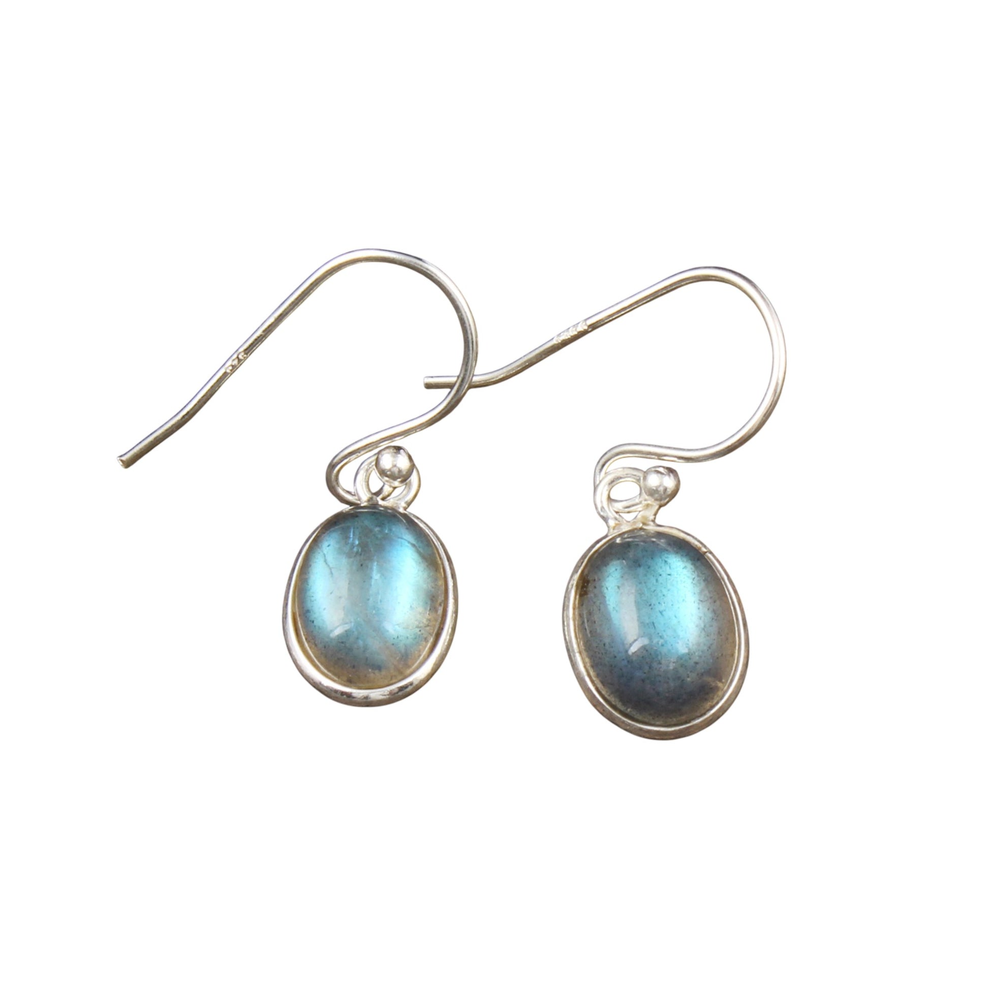Natural Labradorite Earrings Handmade Bezel 925 Sterling Silver Oval Gemstone Earrings Jewelry