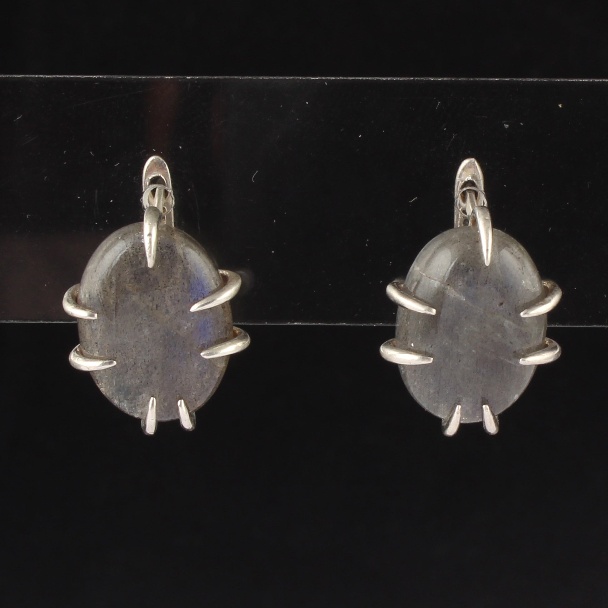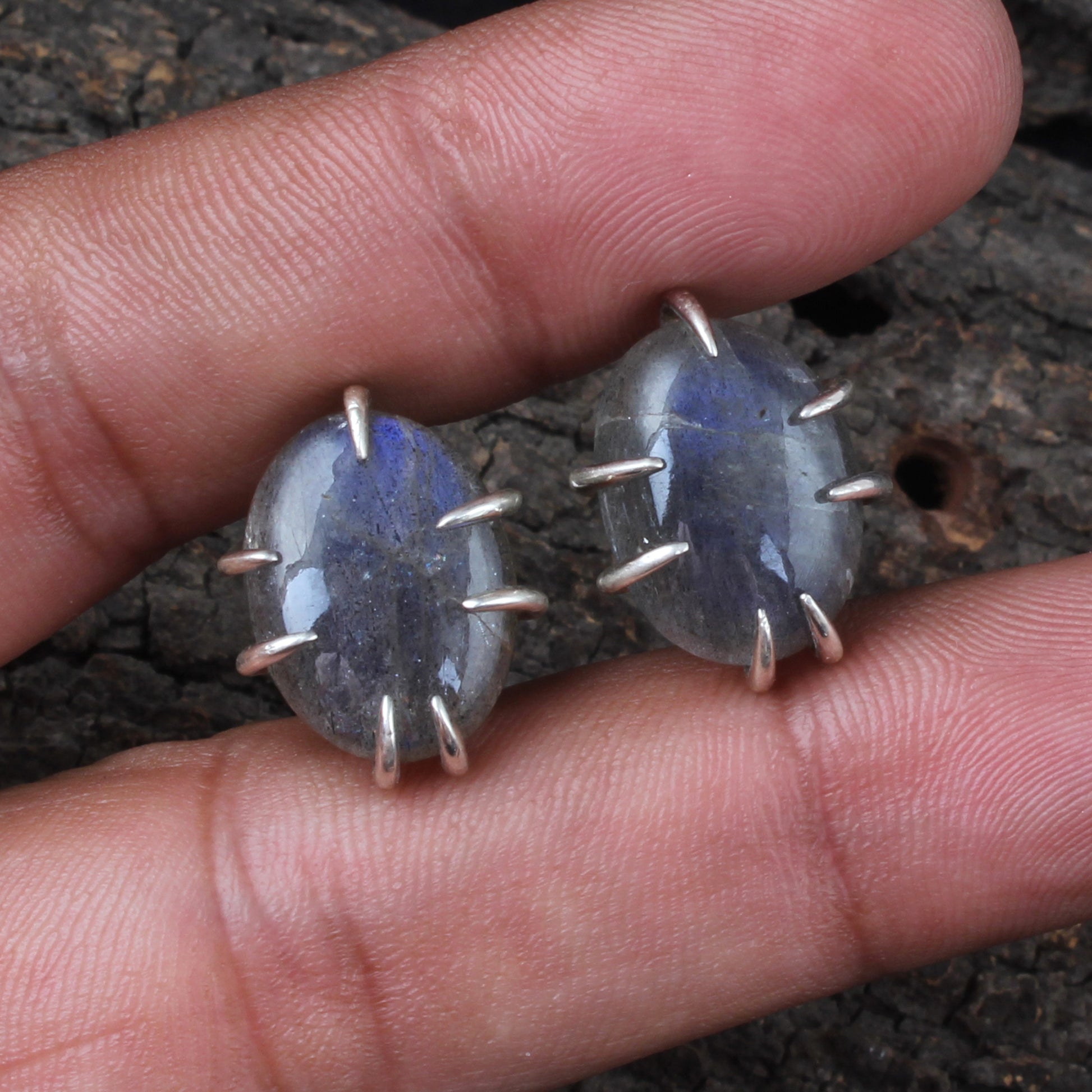 Natural Labradorite Earrings with 925 Sterling Silver Handmade Oval Shape Prong Setting Gemstone Earrings