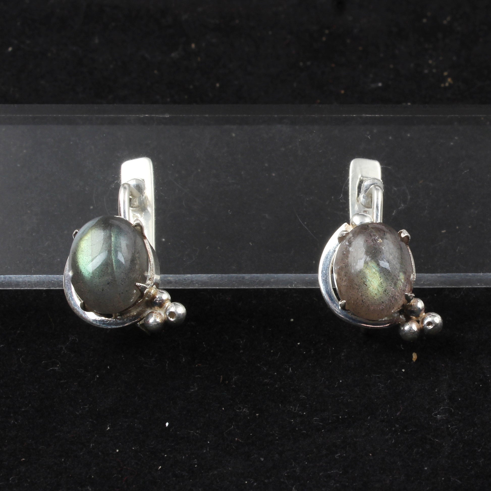 These natural labradorite earrings feature expertly handcrafted 925 sterling silver prong settings that securely hold each 9x7mm oval gemstone. Measuring 2 x 1.2 cm and weighing 4.45 grams, their minimalist design highlights the stone's unique iridescent qualities while offering lightweight comfort suitable for daily wear. Crafted to emphasize both durability and elegance, these earrings bring a refined yet subtle touch to any collection.