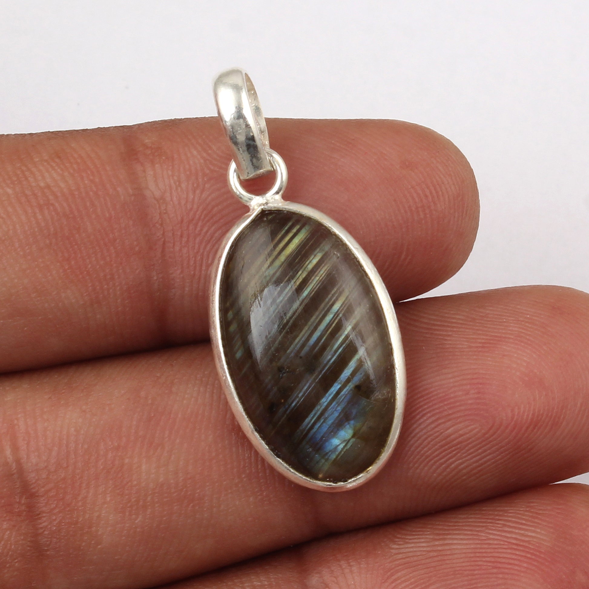 Natural Labradorite Pendant 925 Sterling Silver Bezel Set Pendant Oval Shape Gemstone Jewelry