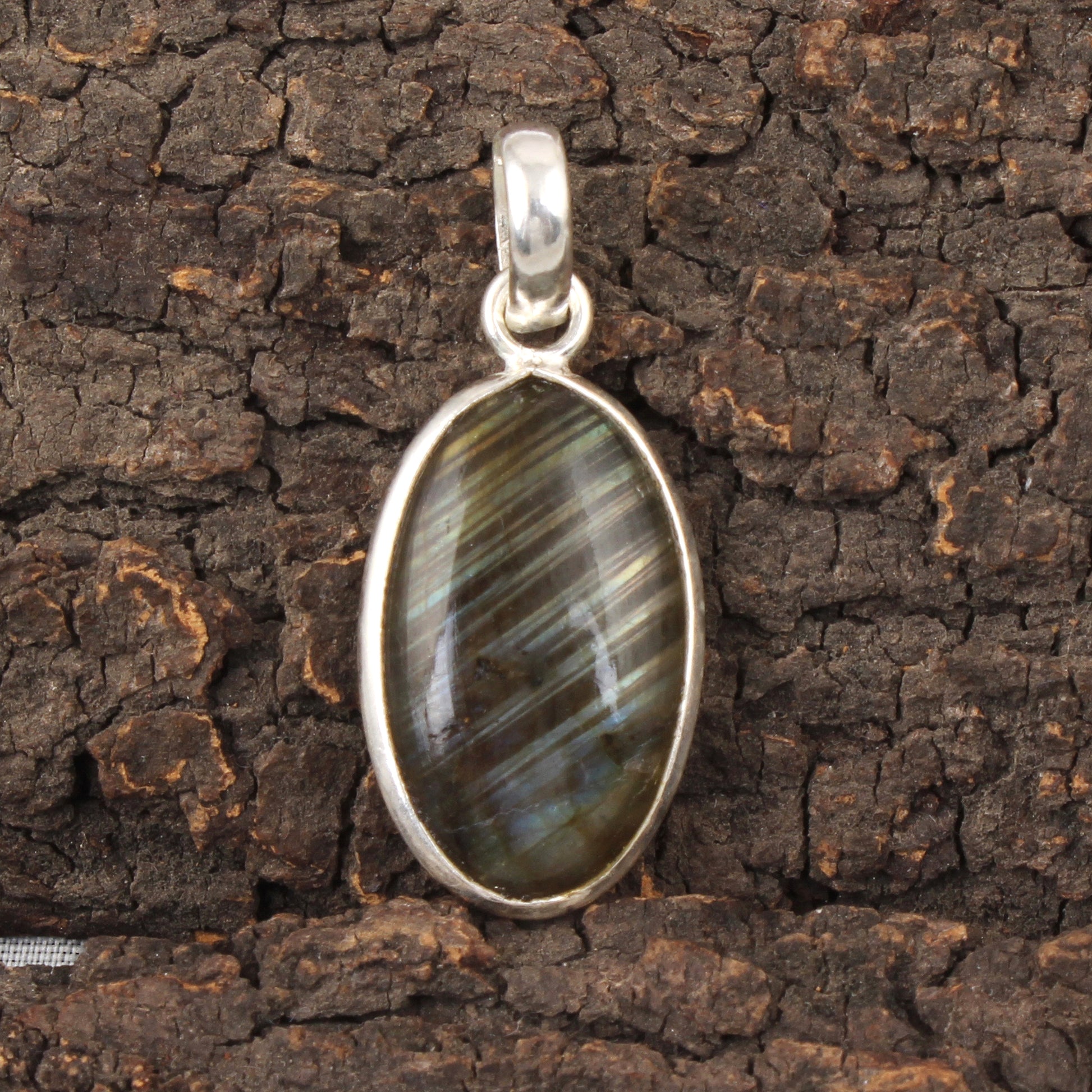 This exquisite Natural Labradorite pendant features a finely crafted 925 sterling silver bezel setting that accentuates the gemstone's captivating oval shape. Measuring 33x14mm and weighing 3 grams, the pendant highlights labradorite's signature play of colors, making it a striking addition to any jewelry collection. Its elegant design ensures versatile wear, combining durability with a sophisticated aesthetic ideal for those who appreciate natural gemstones in expert-quality settings.