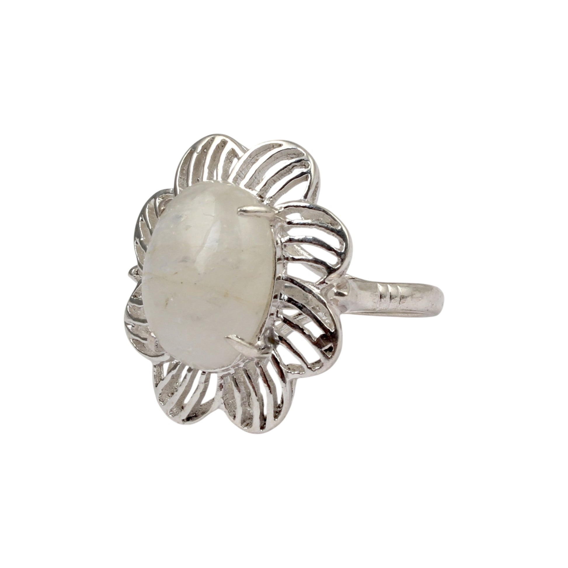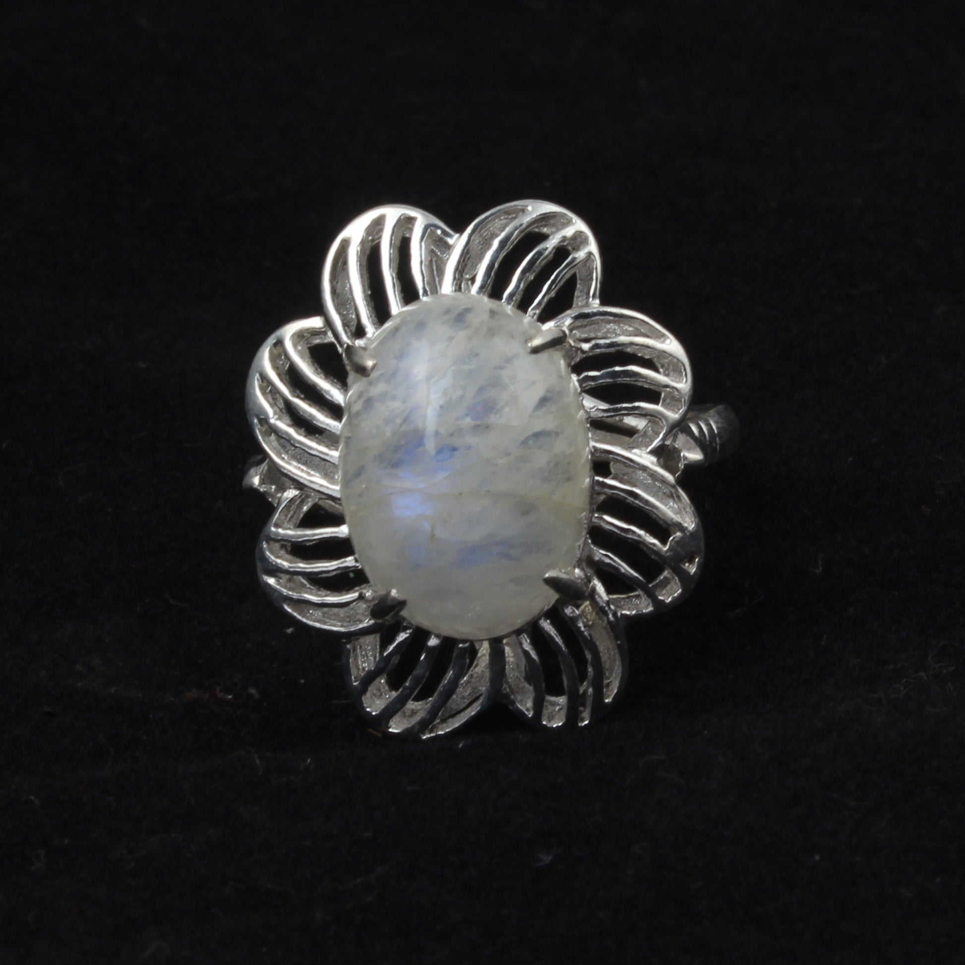 Rainbow Moonstone Openwork Designer Ring 925 Sterling Silver Natural Gemstone Prong Setting Ring