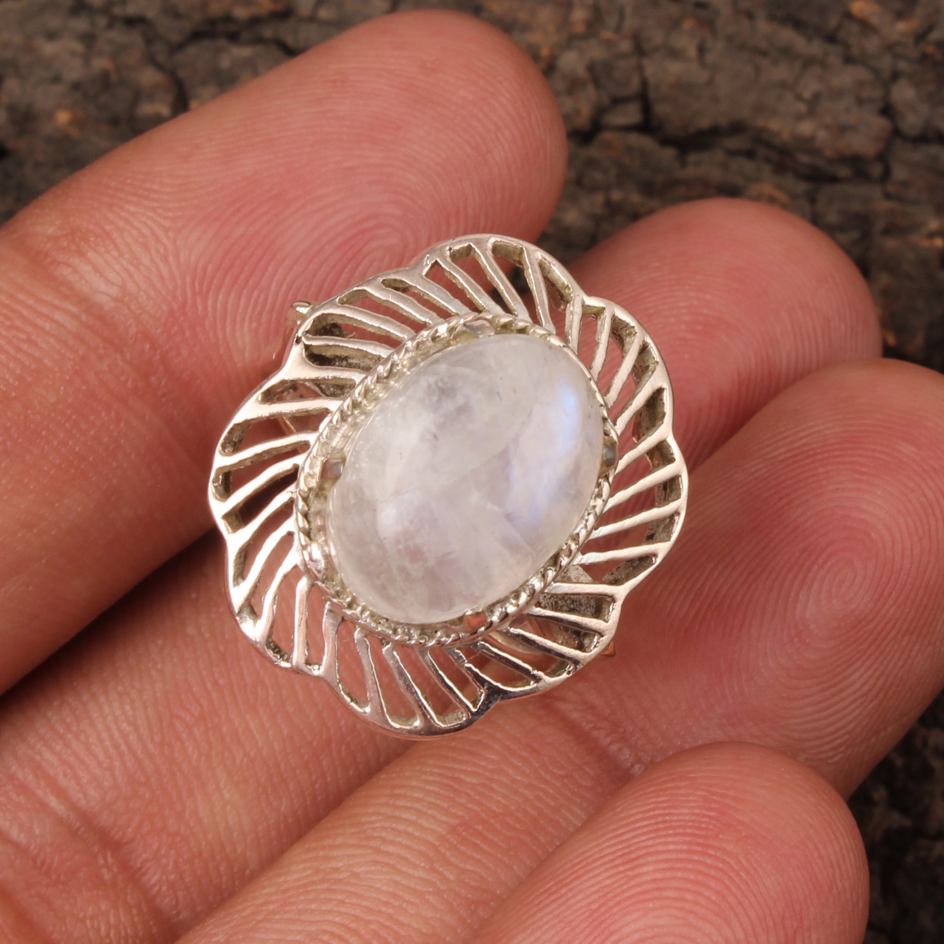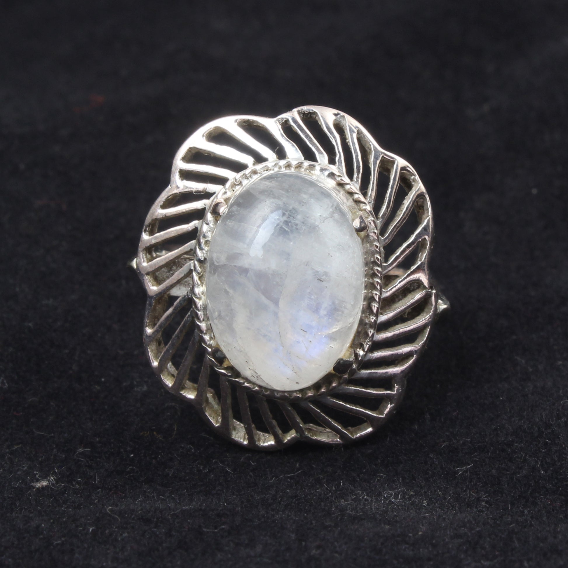 Rainbow Moonstone Openwork Ring Designer 925 Sterling Silver Natural Oval Shape Gemstone Prong Setting Ring