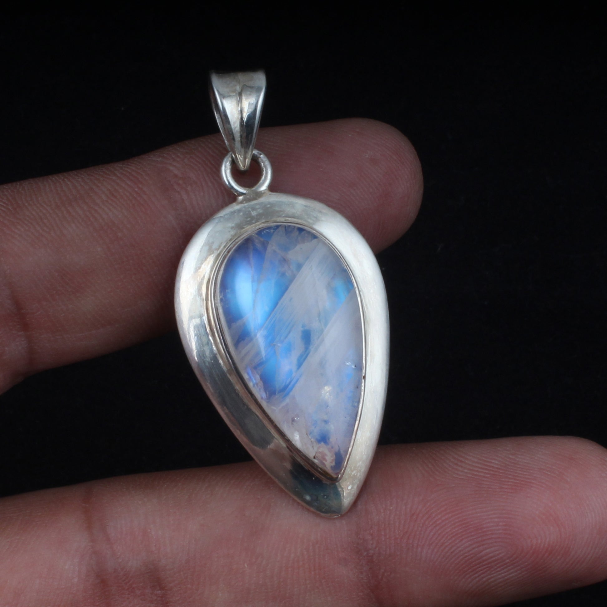 Rainbow Moonstone Pendant Handmade 925 Sterling Silver Teardrop Natural Gemstone Pendant
