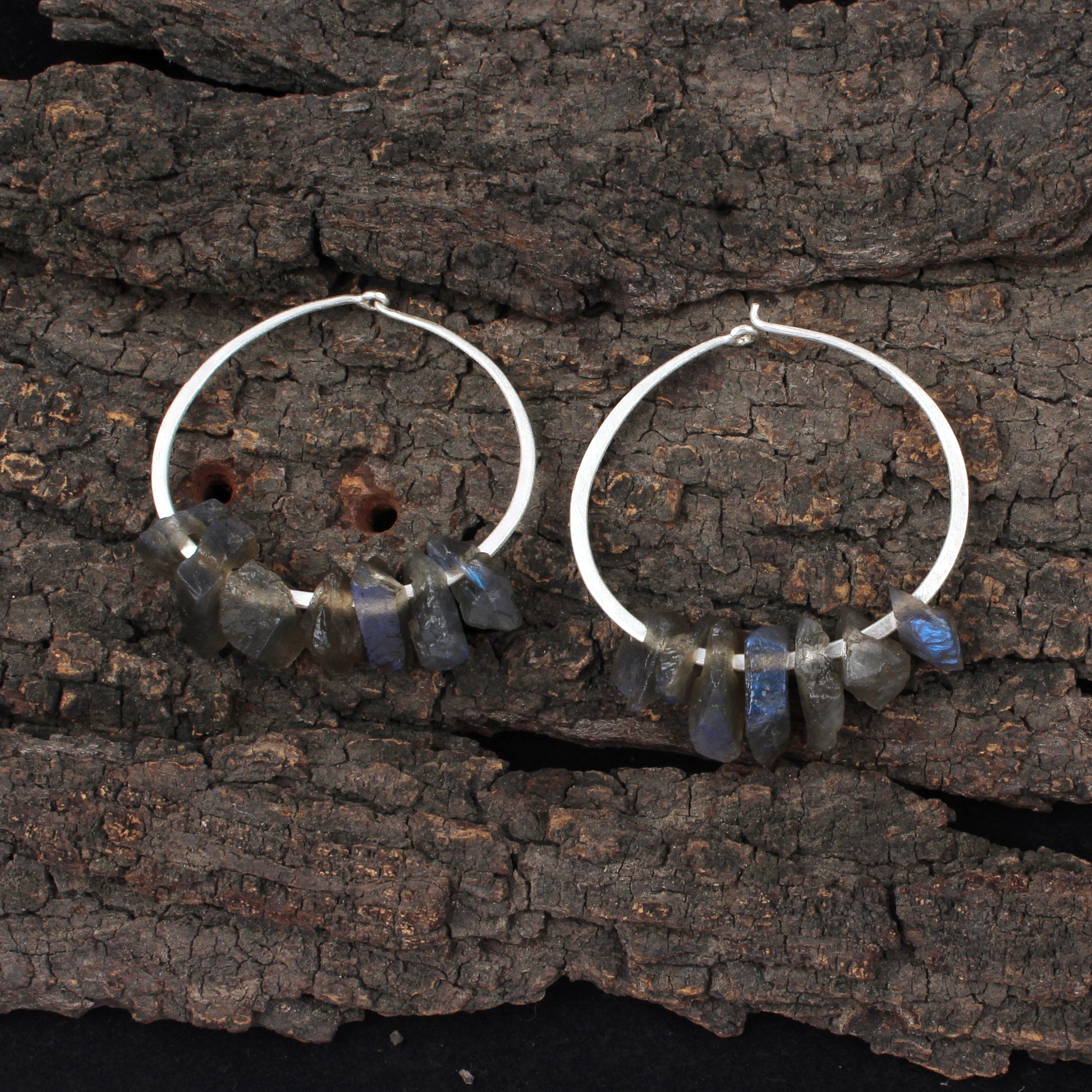 Rough Labradorite Hoop Earrings Handmade 925 Sterling Silver Natural Gemstone Earrings